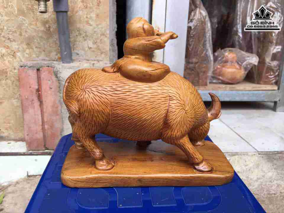 Tượng Chú Tiểu Chăn Trâu Gỗ Bách Xanh Cao 18 Rộng 16 Dày 8 (cm)