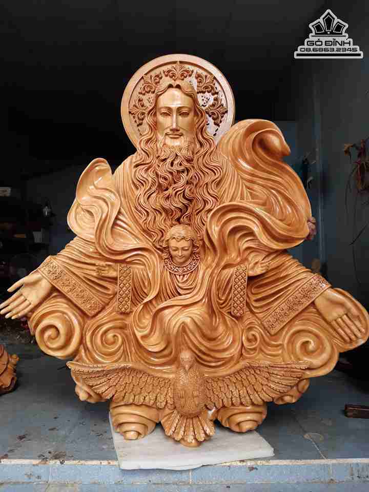 Tượng Chúa Ba Ngôi Gỗ Trai Cao 125 Rộng 110 Dày 20 (cm)