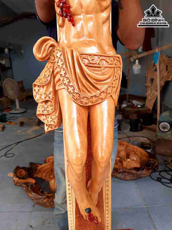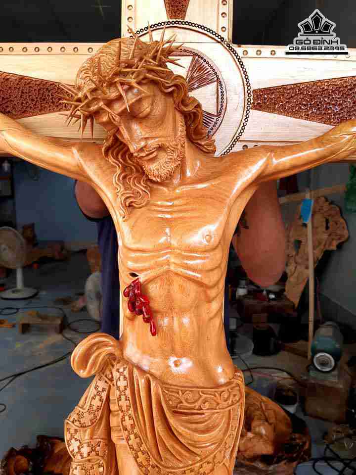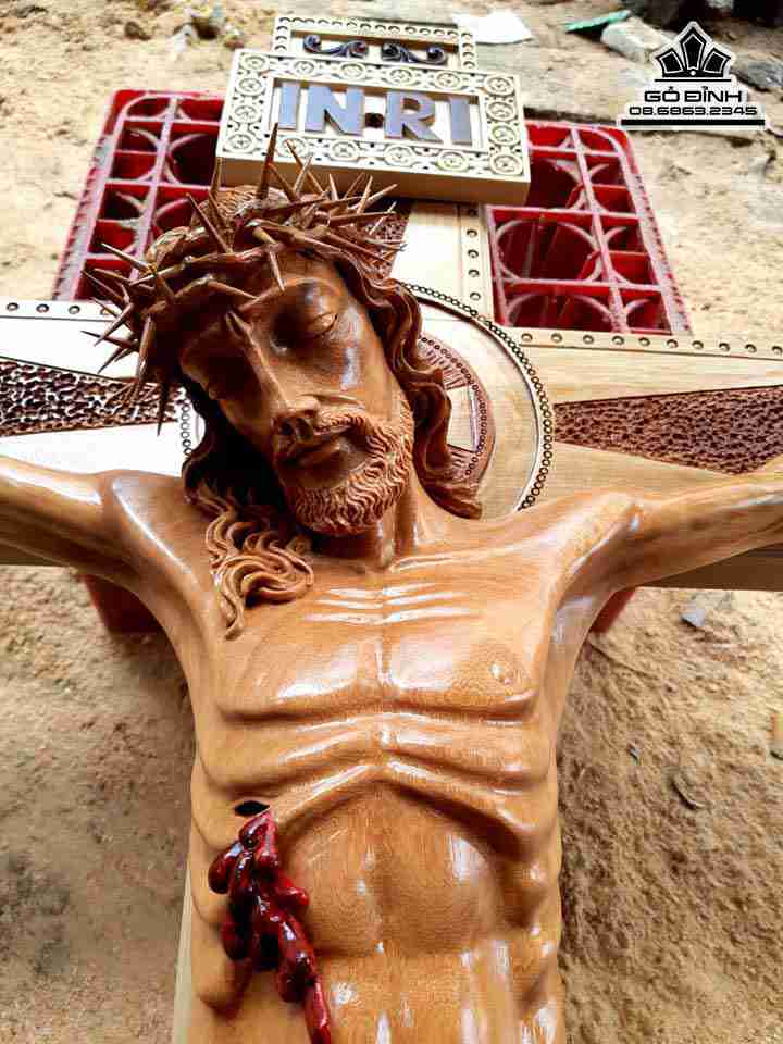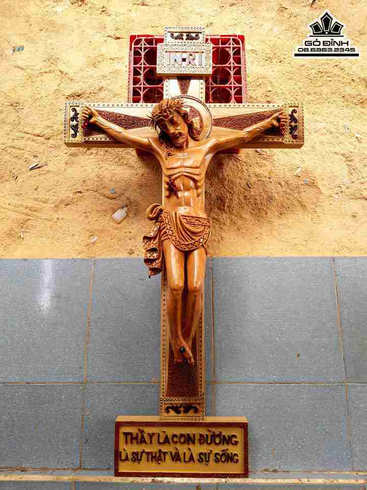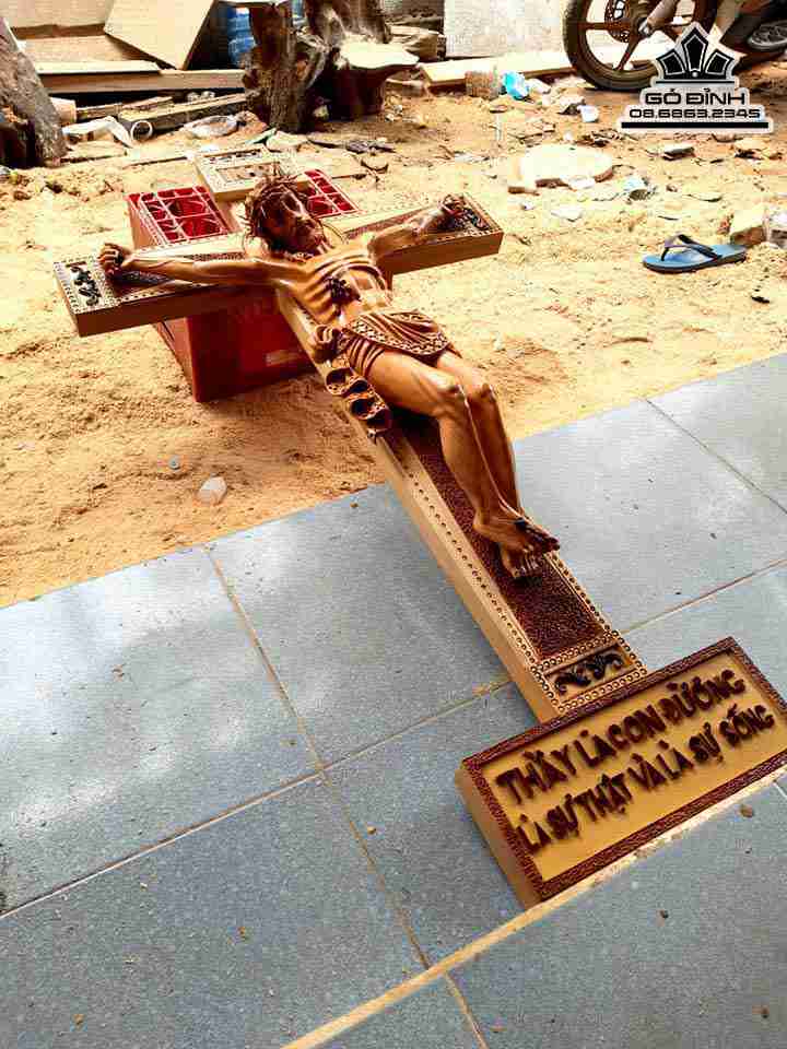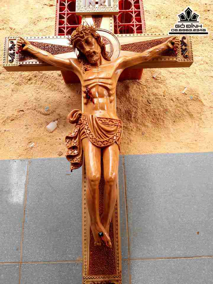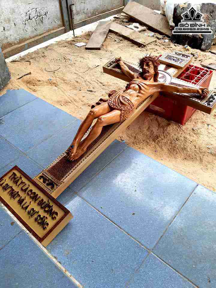 Tượng Chúa Chịu Nạn Gỗ Trai Cao 70 Rộng 64 Cây Thánh Giá Cao 140 Rộng 75 (cm)