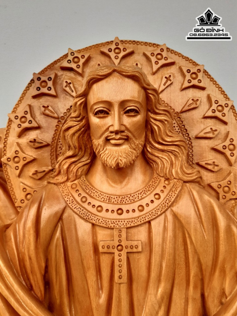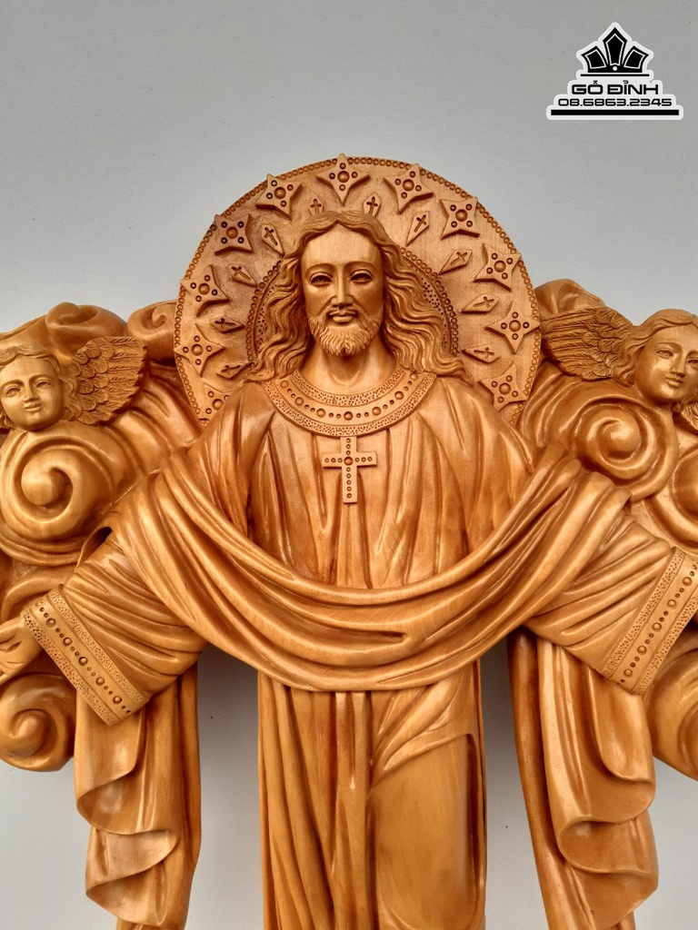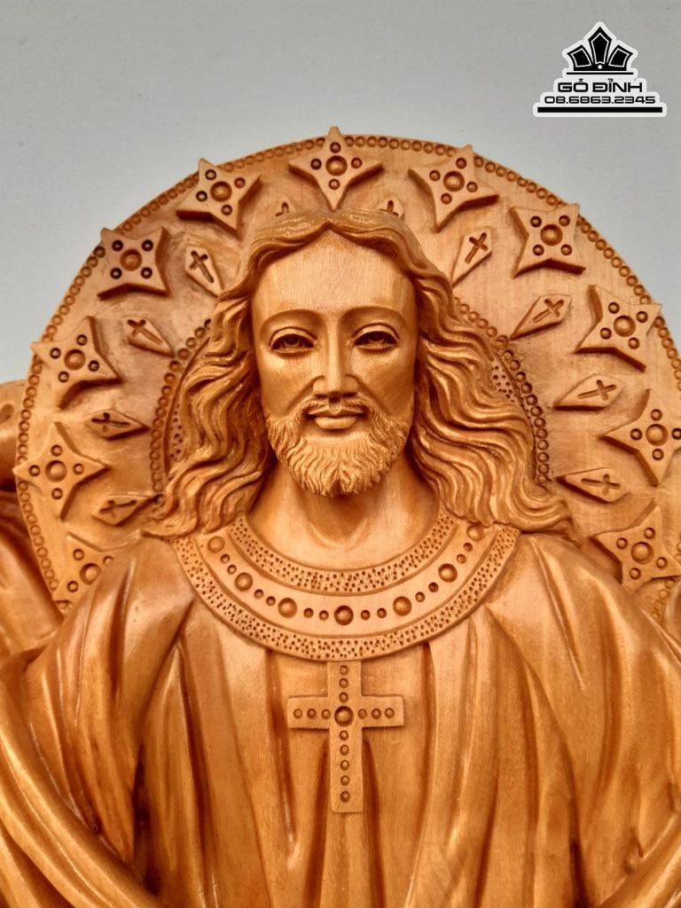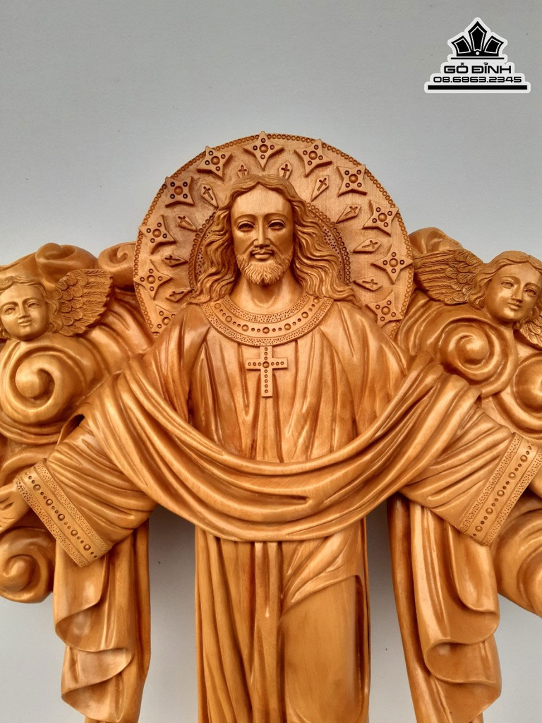 Tượng Chúa Phục Sinh Gỗ Trai Cao 80 Rộng 70 Dày 12 (cm)