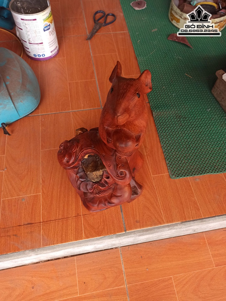 Tượng Chuột Gỗ Hương Ôm Đá