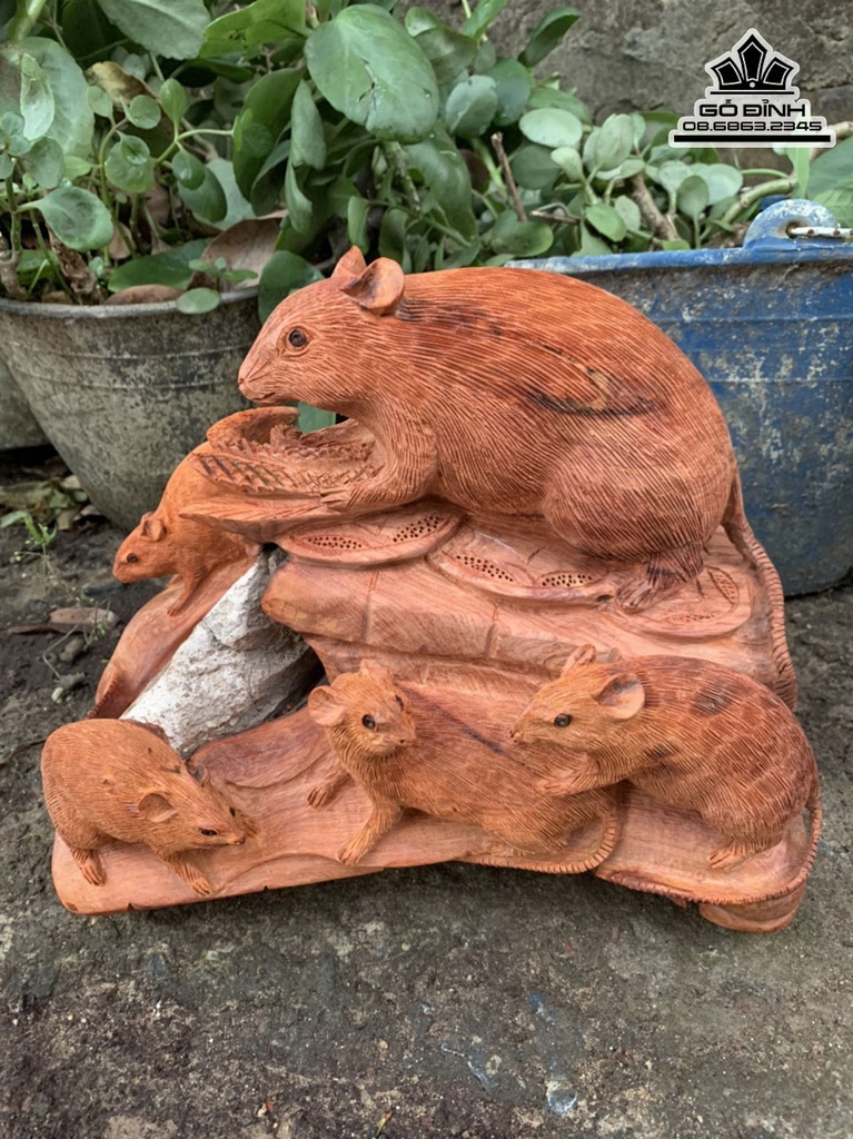 Tượng Chuột Gỗ Hương Việt Cao 24 Ngang 30 Sâu 20 (cm)