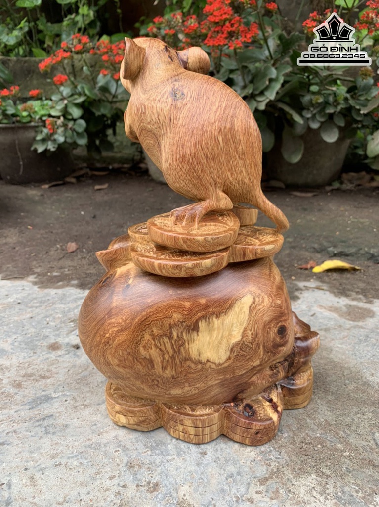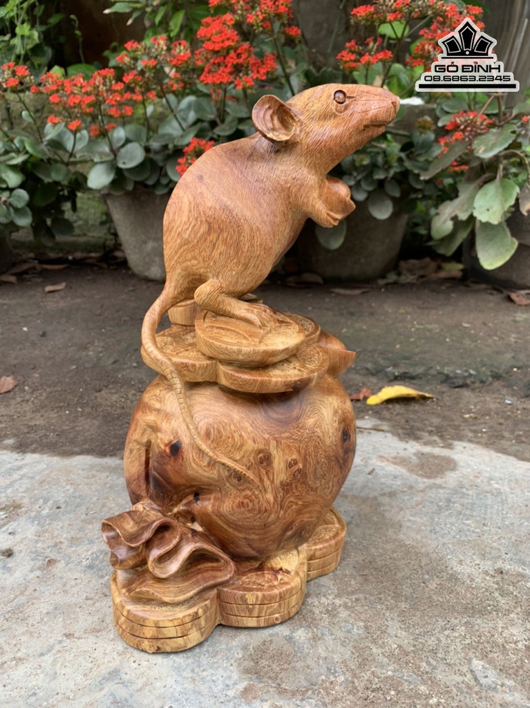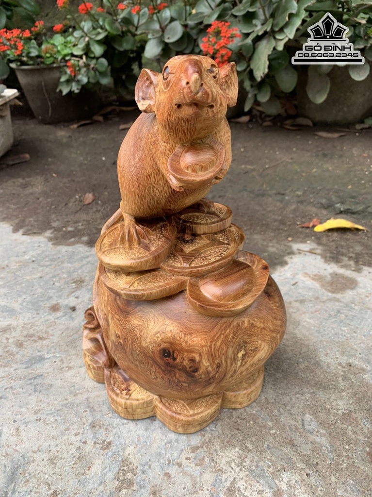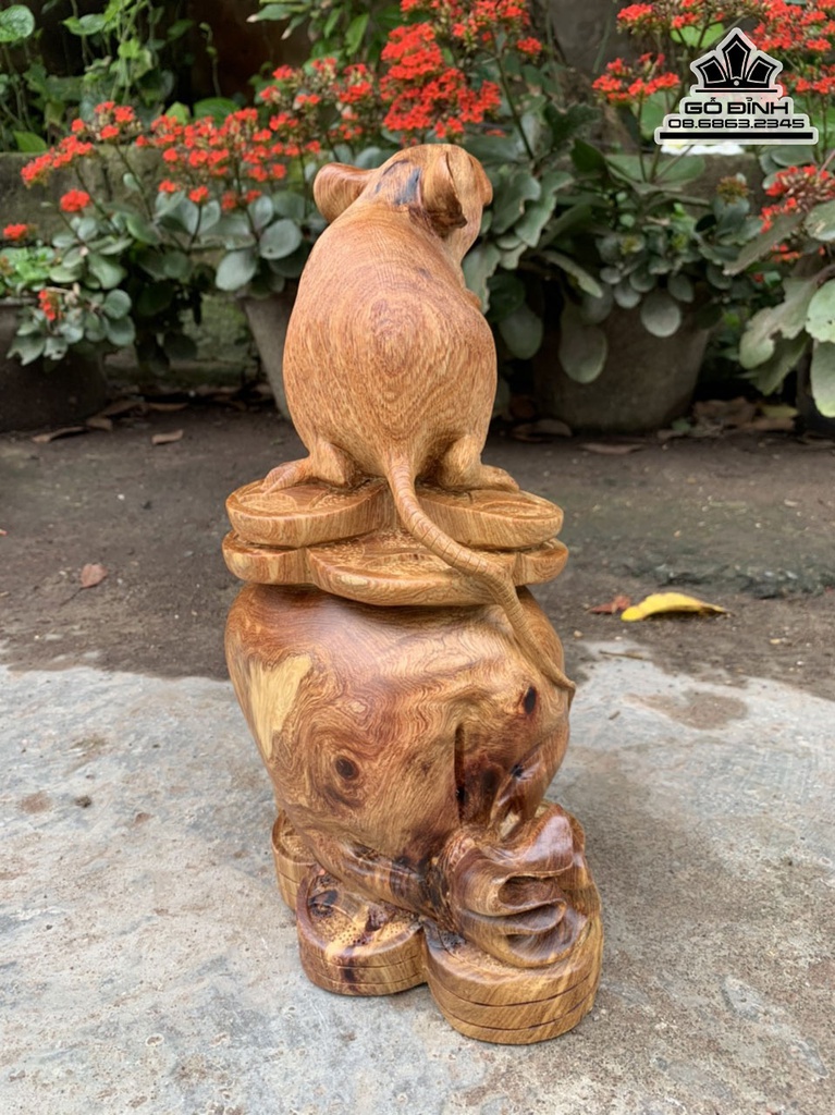 Tượng Chuột Gỗ Nu Hương Cao 30 Ngang 20 Sâu 14 (cm)