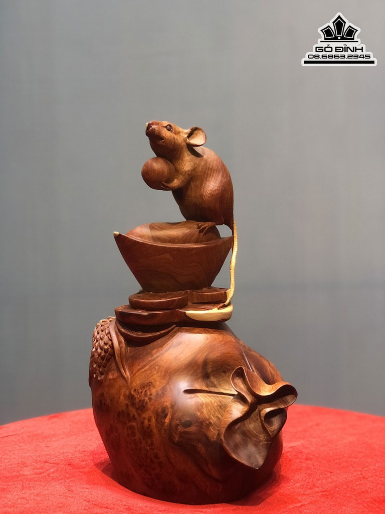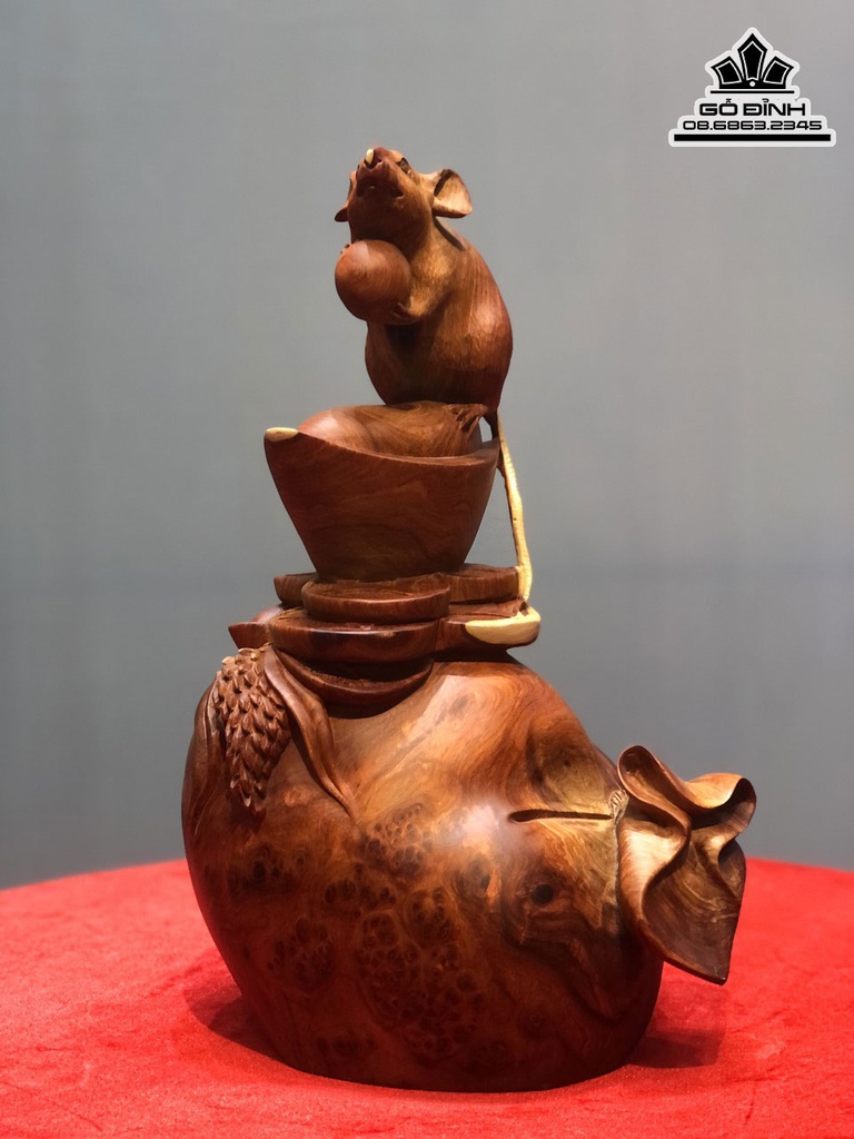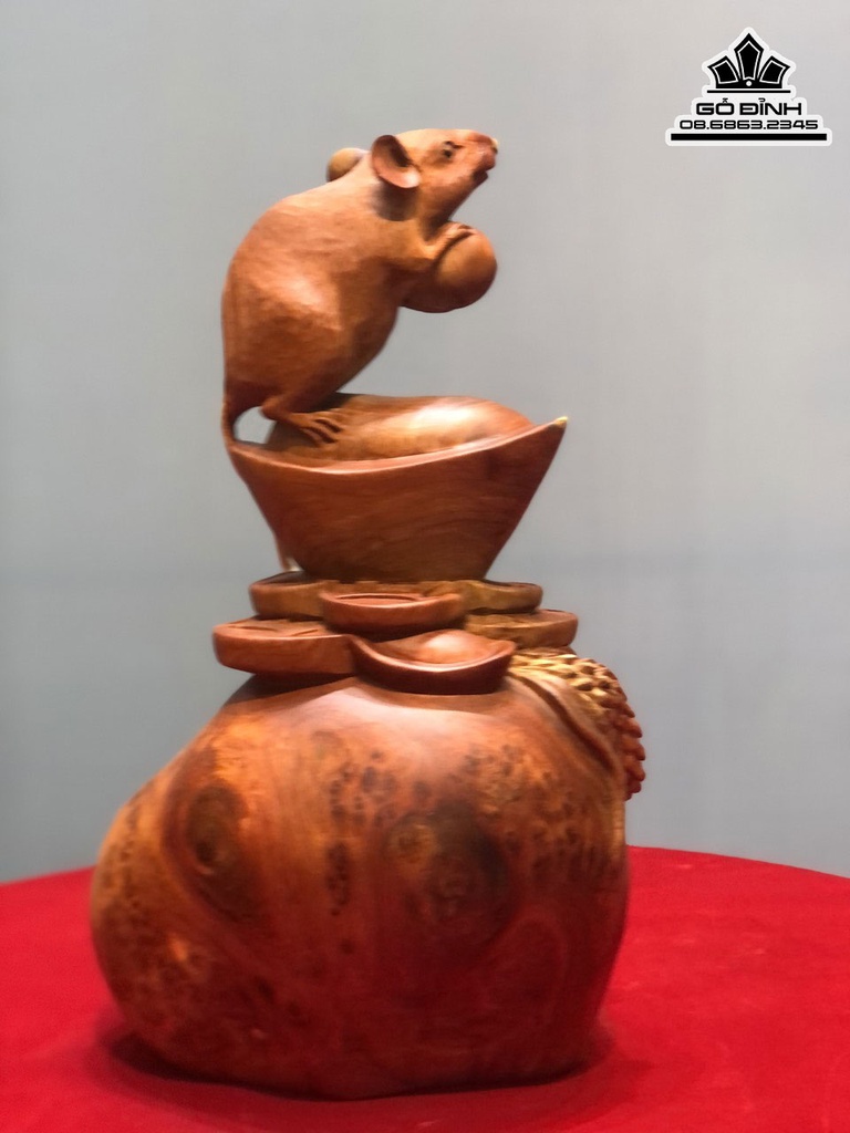 Tượng Chuột Gỗ Nu Hương Cao 42 Ngang 27 Sâu 24 (cm)