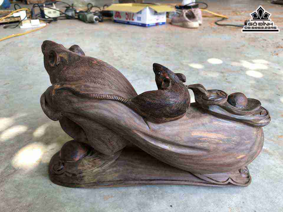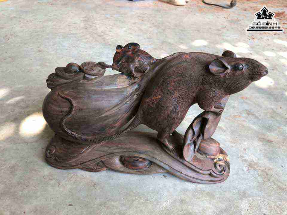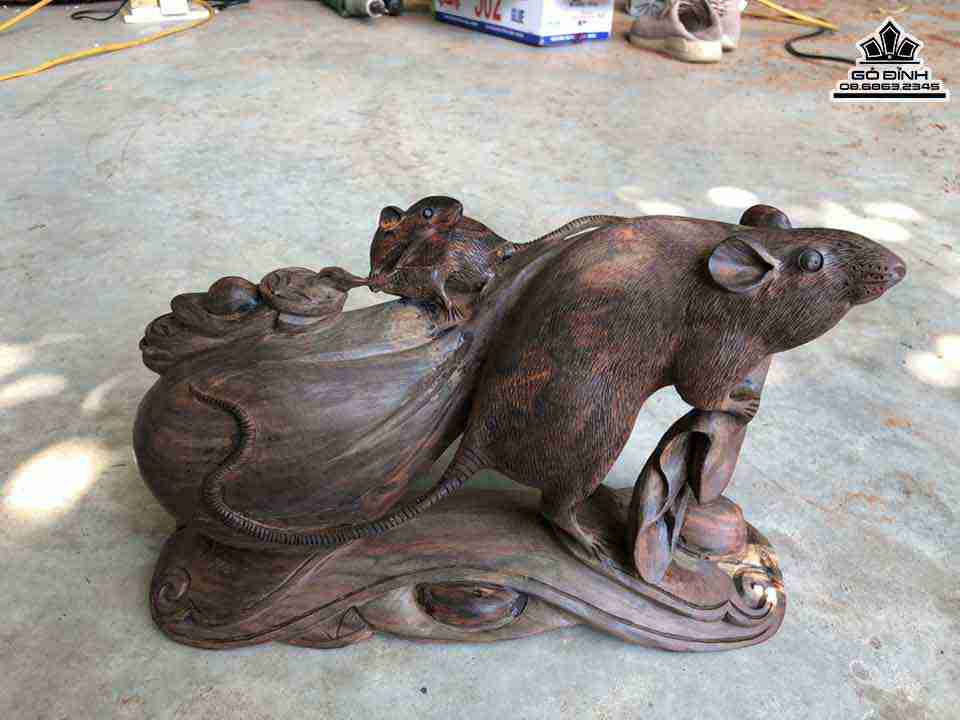 Tượng Chuột Kéo Bao Tiền Gỗ Trắc Cao 19 Ngang 30 Sâu 10 (cm)