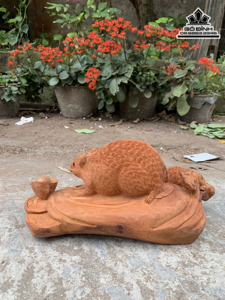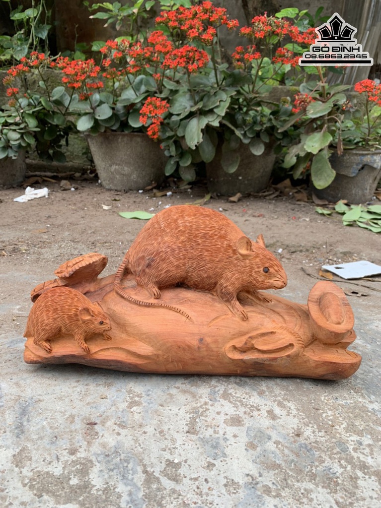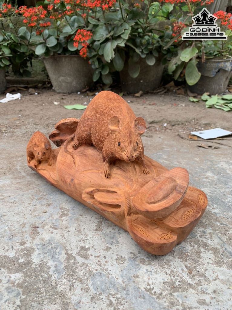 Tượng Chuột Mẫu Tử Gỗ Hương Việt Cao 15 Ngang 35 Sâu 18 (cm)