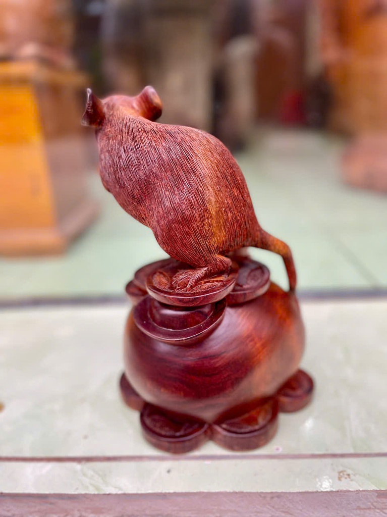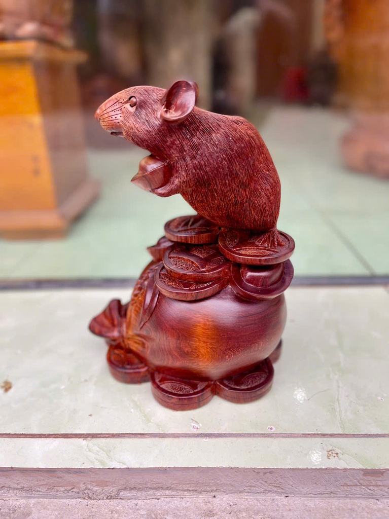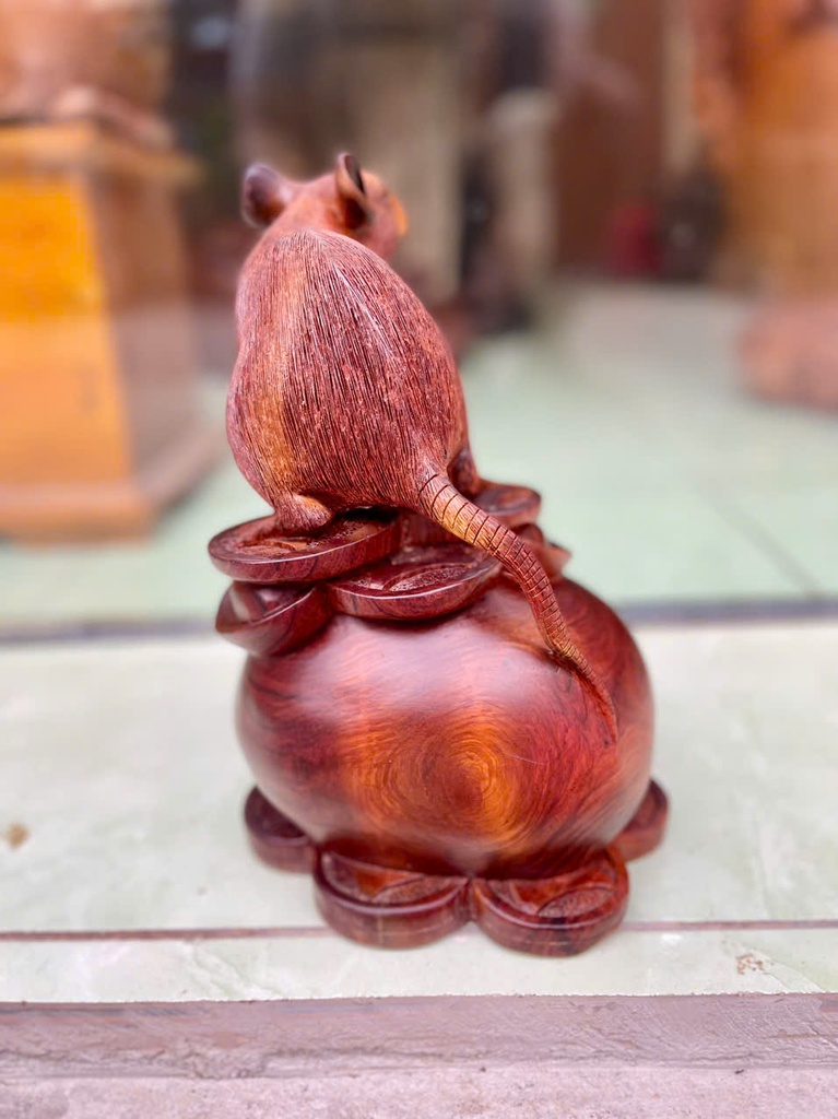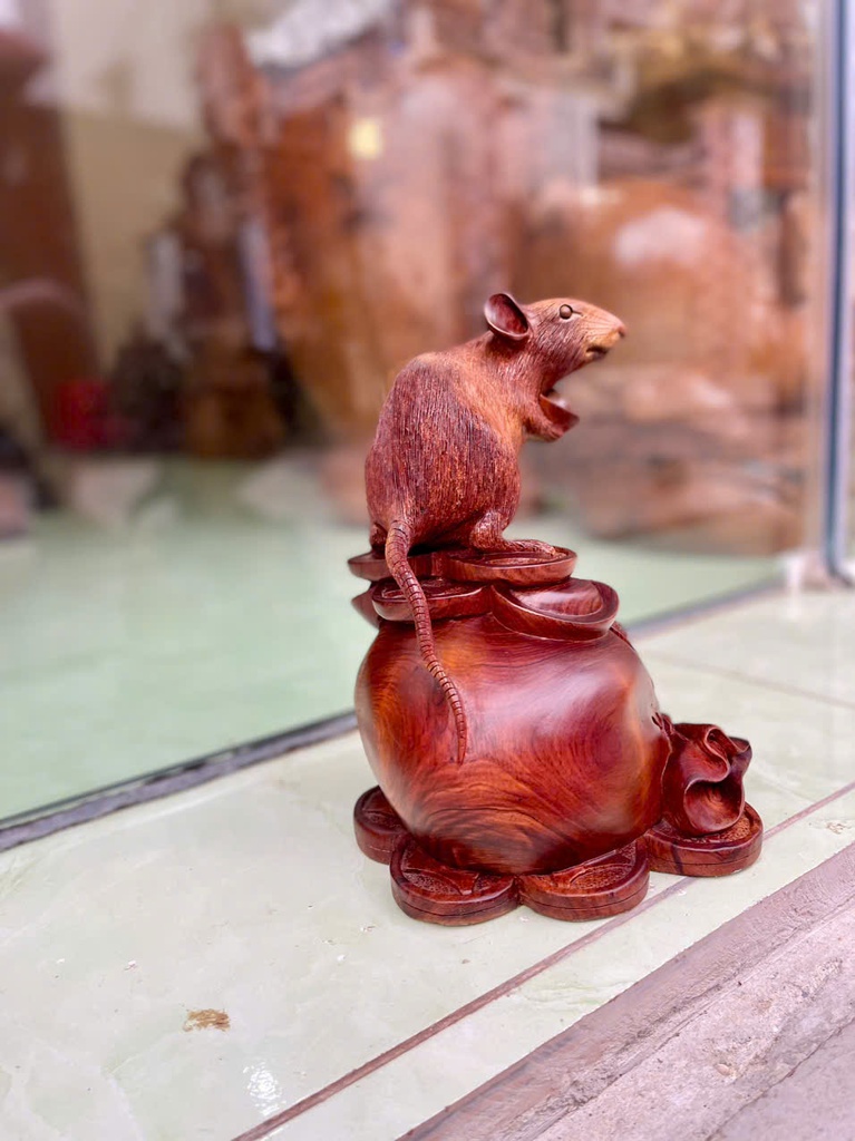 Tượng Chuột Phong Thủy Gỗ Cẩm Cao 25 Ngang 18 Sâu 16 (cm)