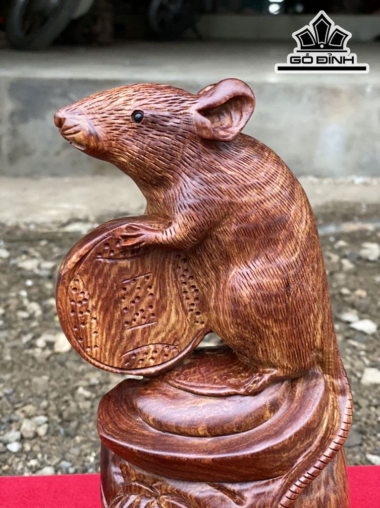 Tượng Chuột Phong Thủy Gỗ Cẩm Cao 27 Ngang 13 Sâu 8 (cm)