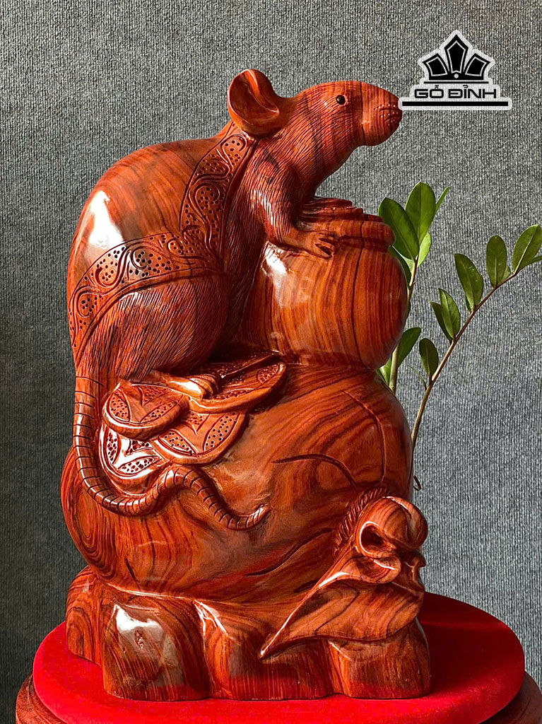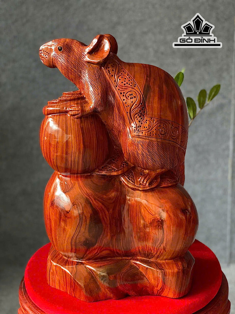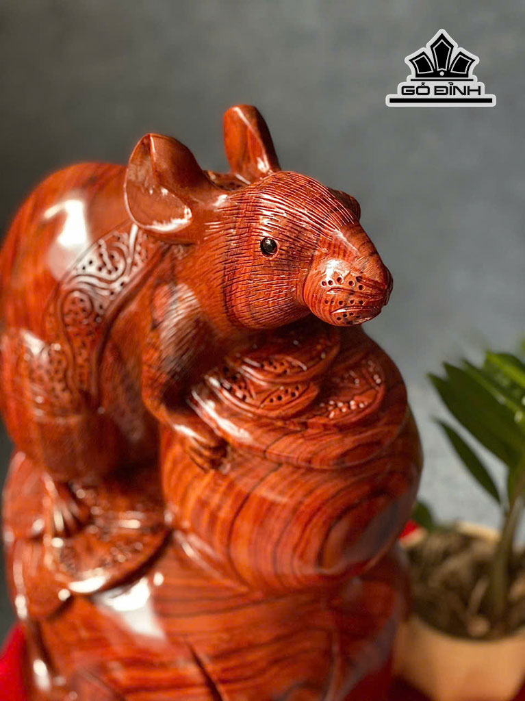 Tượng Chuột Phong Thủy Gỗ Cẩm Cao 46 Ngang 28 Sâu 22 (cm)