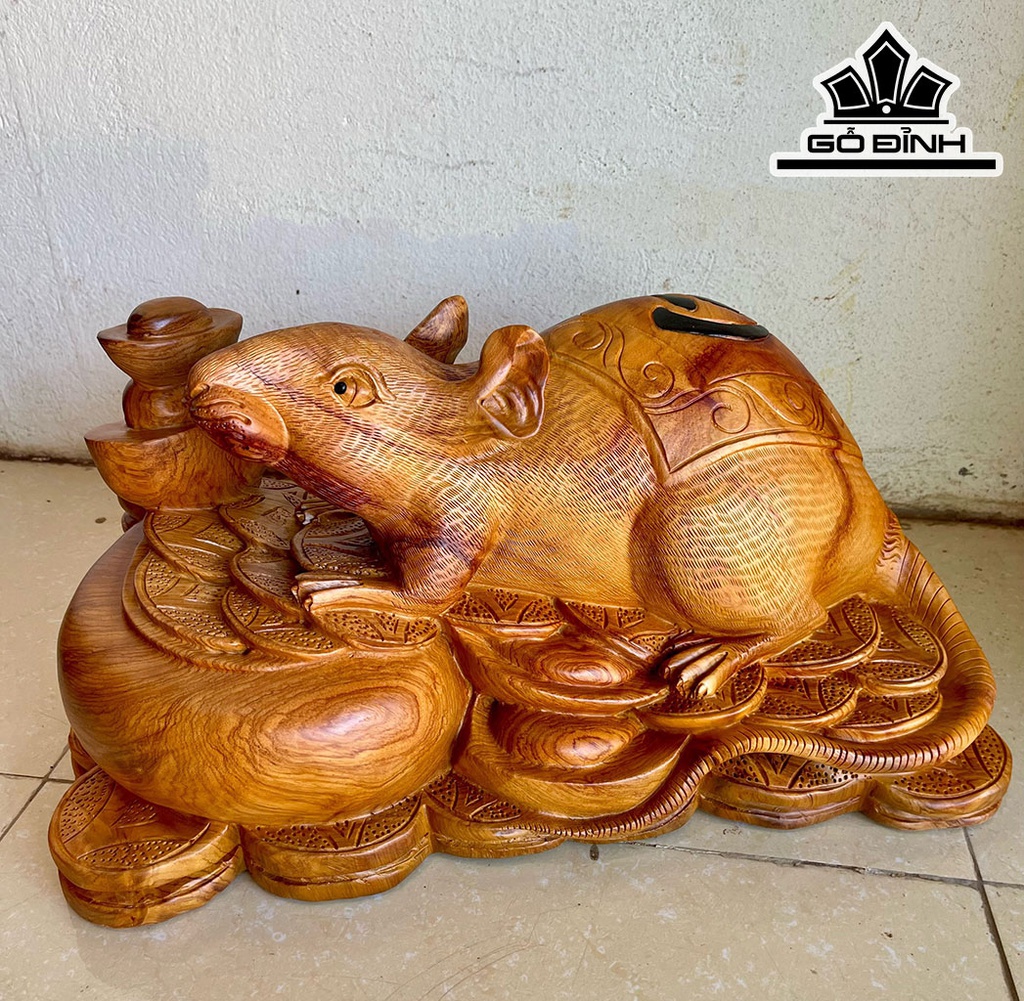 Tượng Chuột Phong Thủy Gỗ Hương Cao 27 Ngang 50 Sâu 23 (cm)