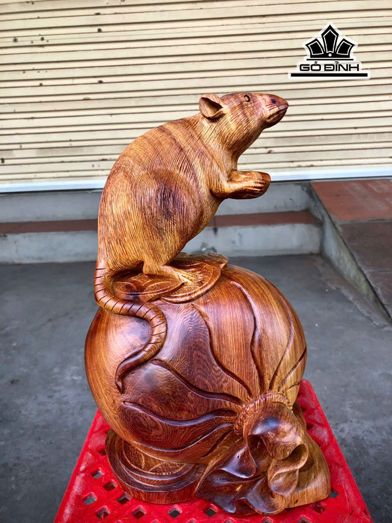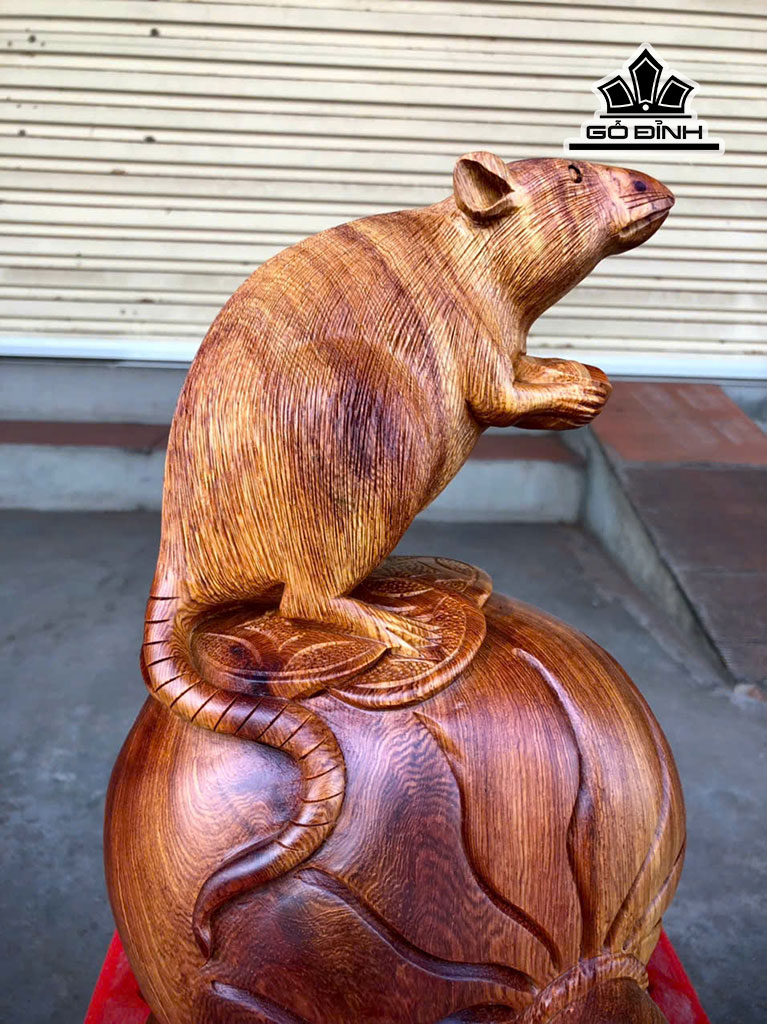 Tượng Chuột Phong Thủy Gỗ Hương Cao 29 Ngang 19 Sâu 16 (cm)