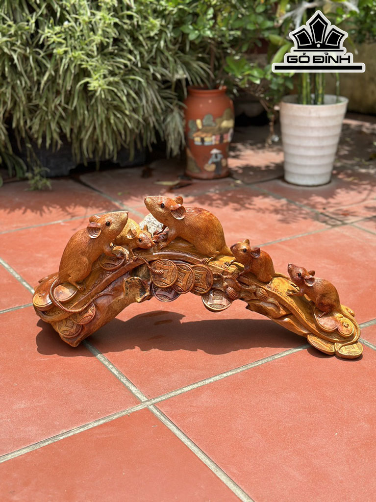 Tượng Chuột Phong Thủy Gỗ Hương Cao 32 Ngang 77 Sâu 25 (cm)