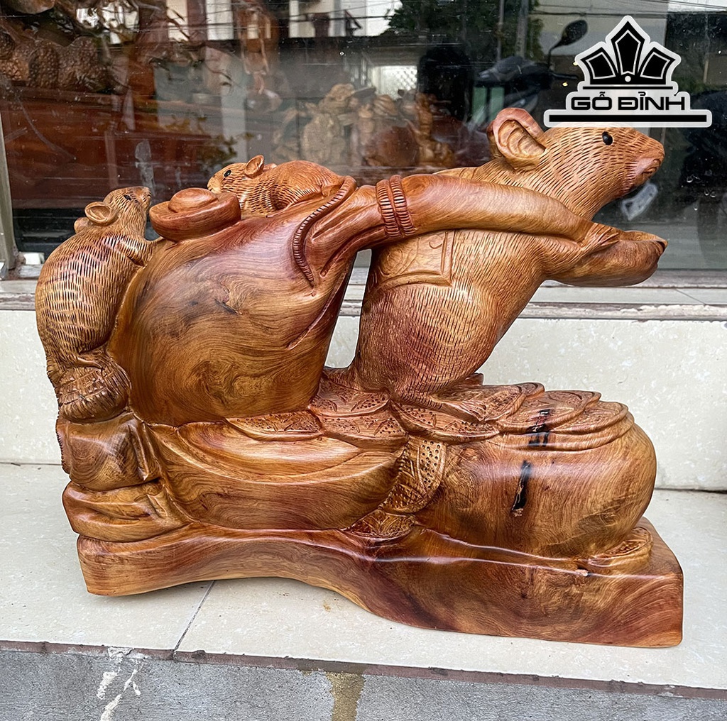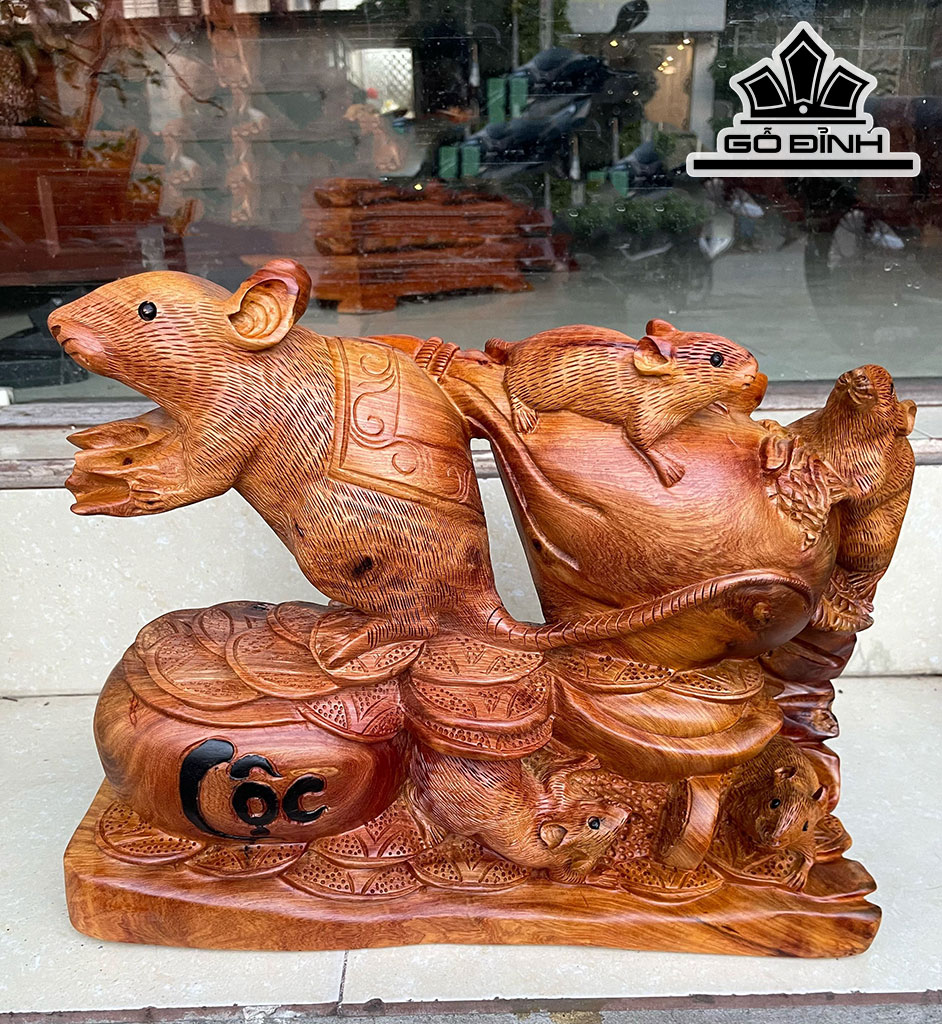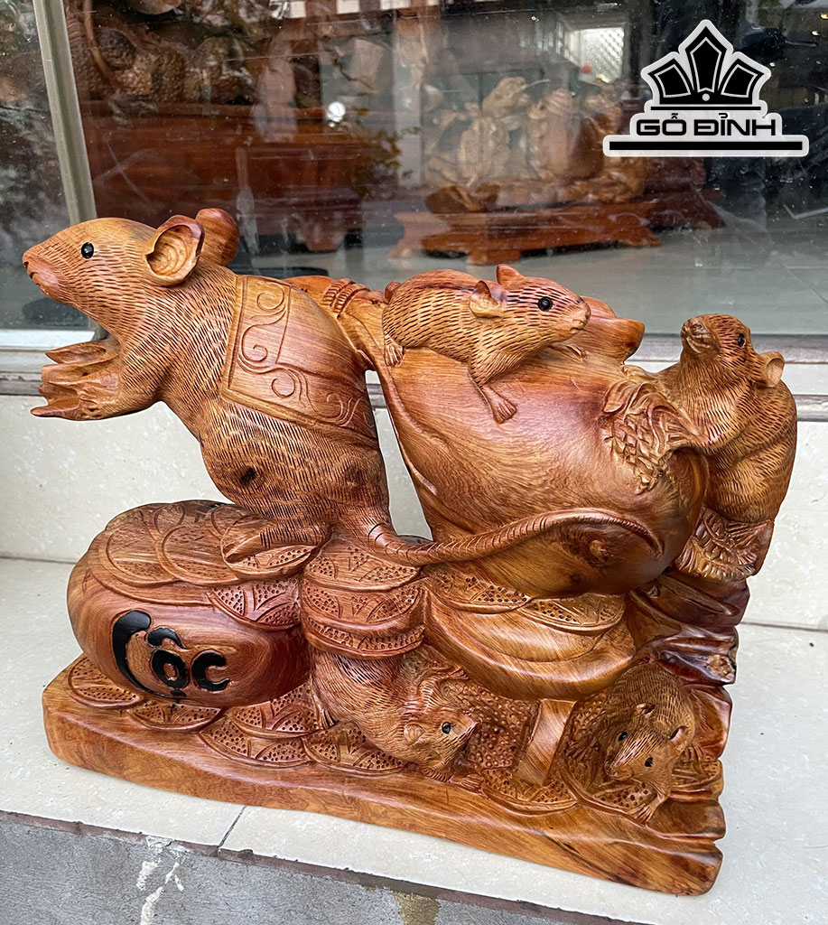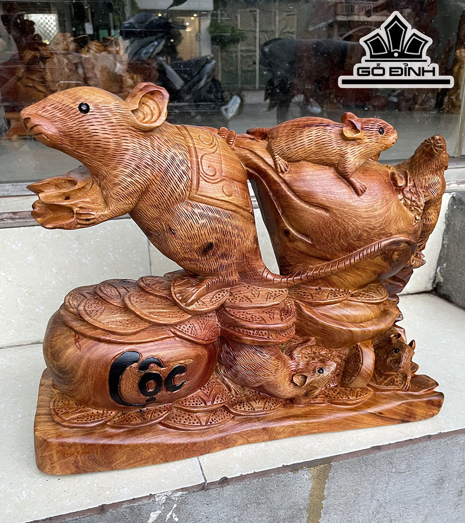 Tượng Chuột Phong Thủy Gỗ Hương Cao 33 Ngang 41 Sâu 12 (cm)
