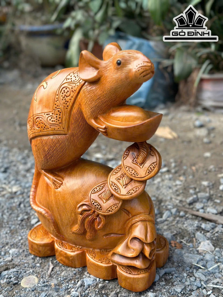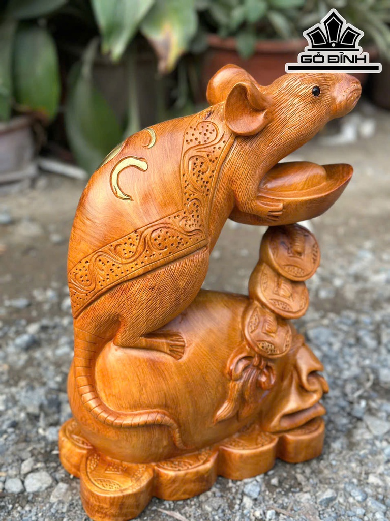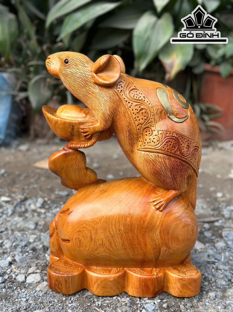 Tượng Chuột Phong Thủy Gỗ Hương Cao 39 Ngang 26 Sâu 13 (cm)