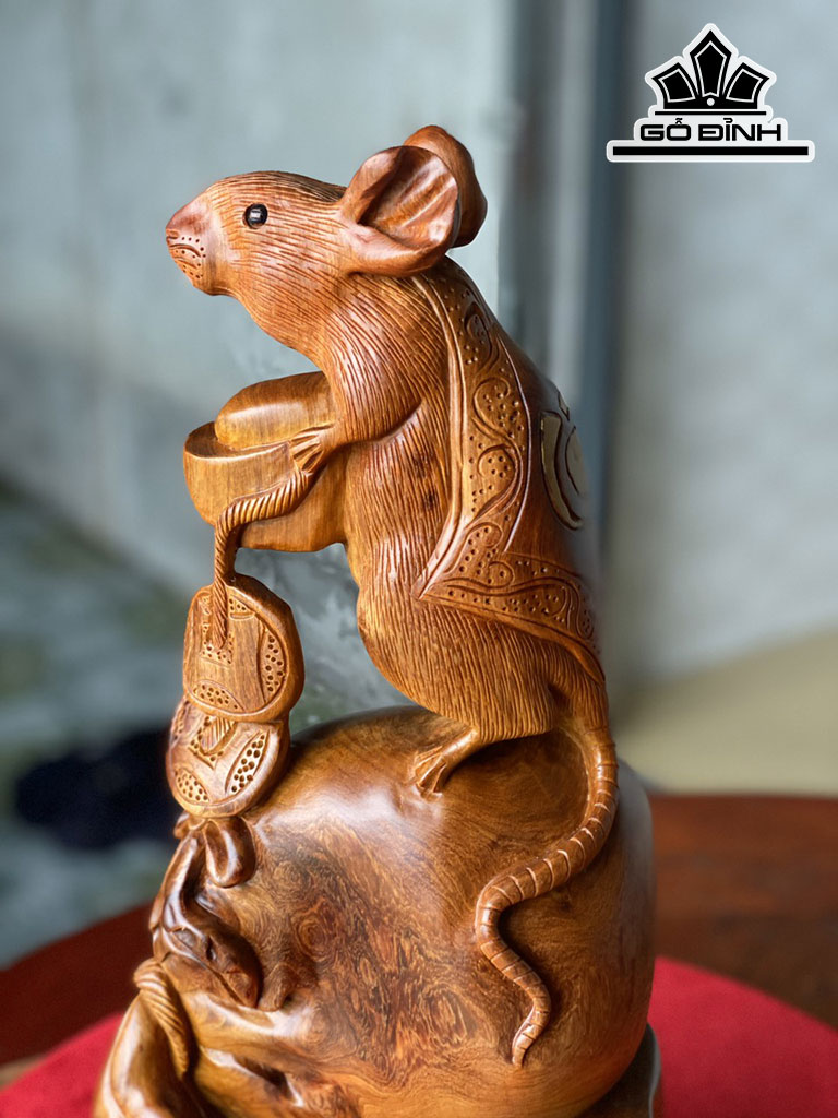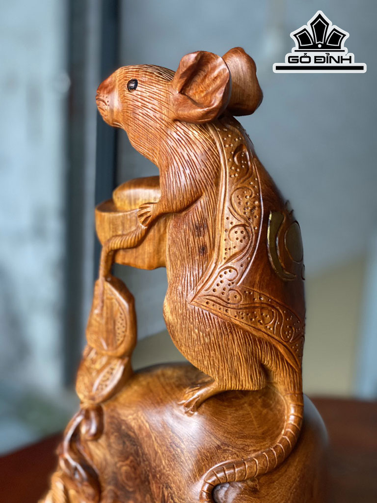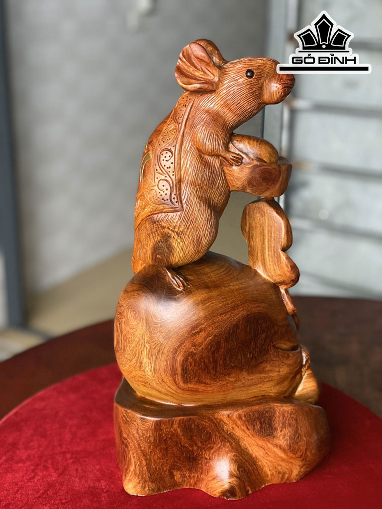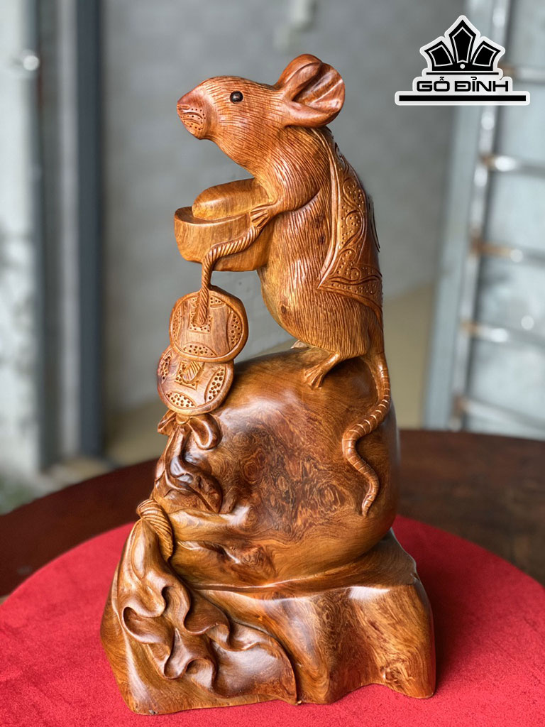 Tượng Chuột Phong Thủy Gỗ Hương Cao 40 Ngang 22 Sâu 15 (cm)