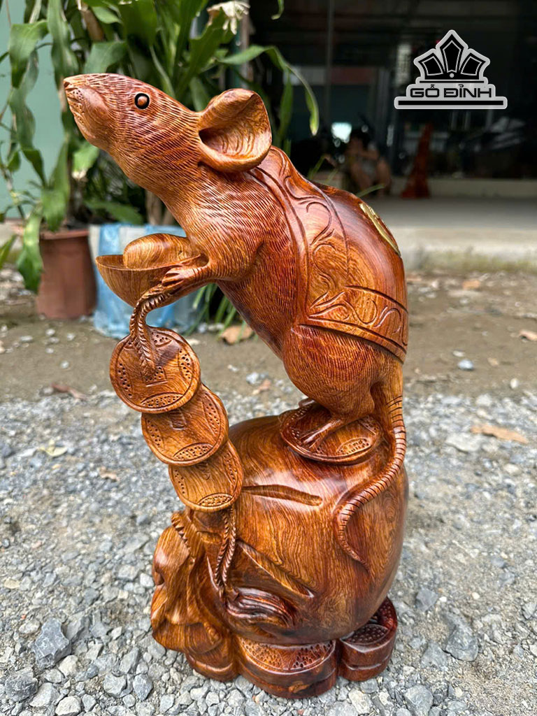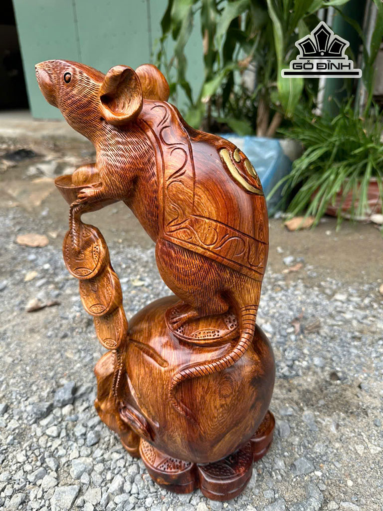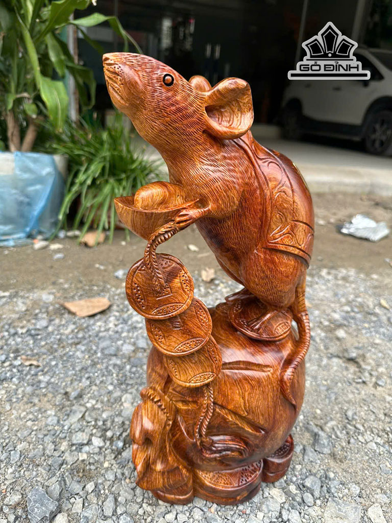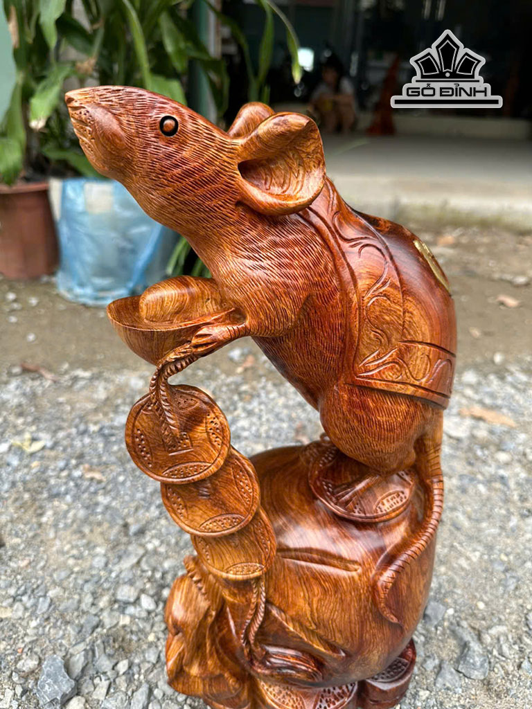 Tượng Chuột Phong Thủy Gỗ Hương Cao 41 Ngang 20 Sâu 15 (cm)