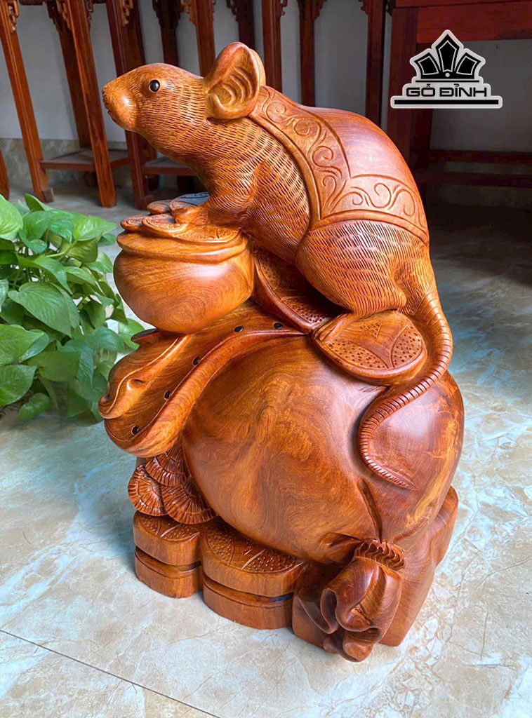 Tượng Chuột Phong Thủy Gỗ Hương Cao 45 Ngang 29 Sâu 19 (cm)