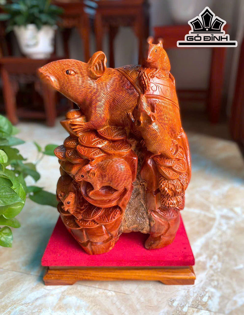 Tượng Chuột Phong Thủy Gỗ Hương Cao 46 Ngang 28 Sâu 20 (cm)