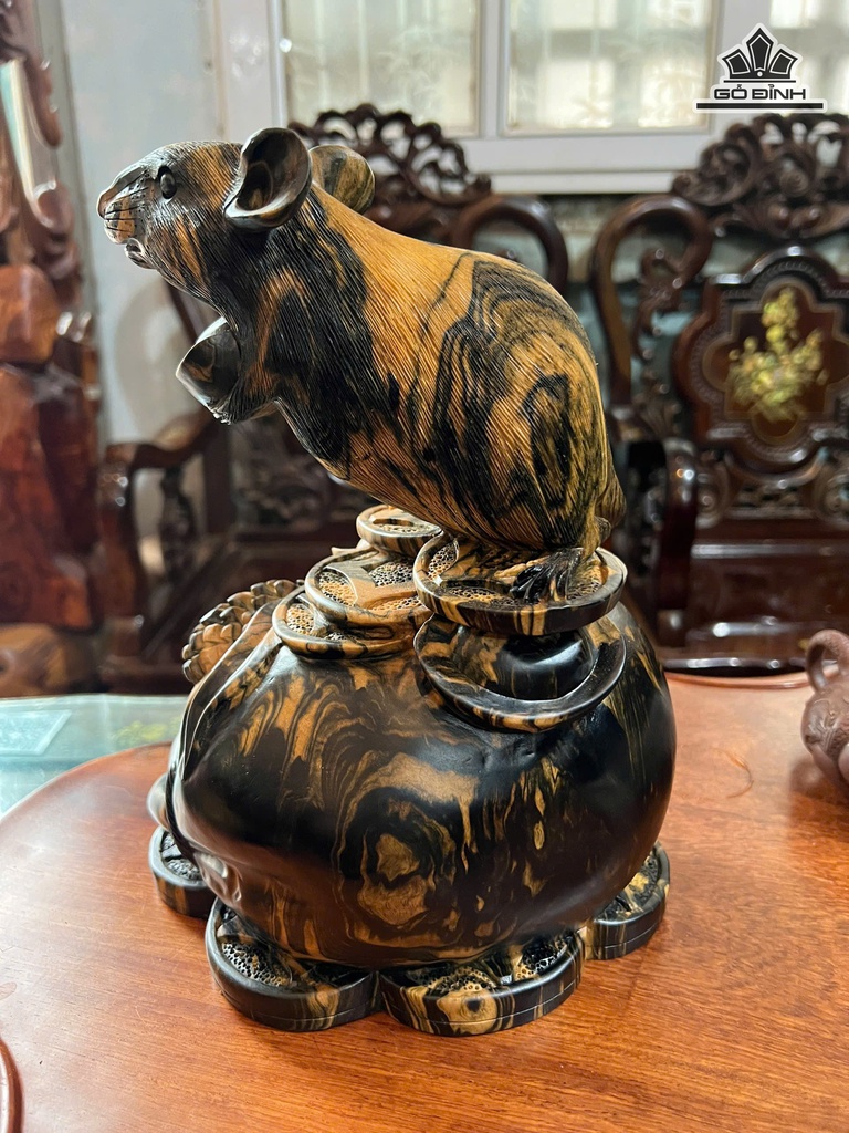 Tượng Chuột Phong Thủy Gỗ Mun Hoa Cao 26 Ngang 19 Sâu 15 (cm)