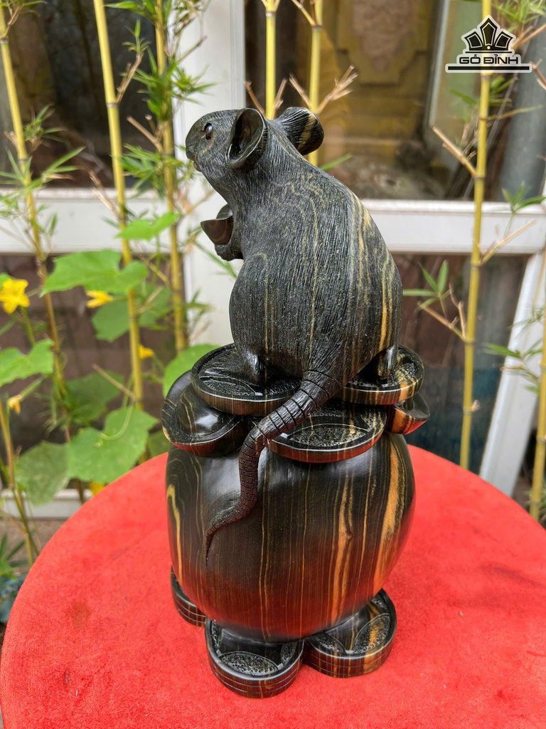 Tượng Chuột Phong Thủy Gỗ Mun Hoa Cao 30 Ngang 17 Sâu 15 (cm)