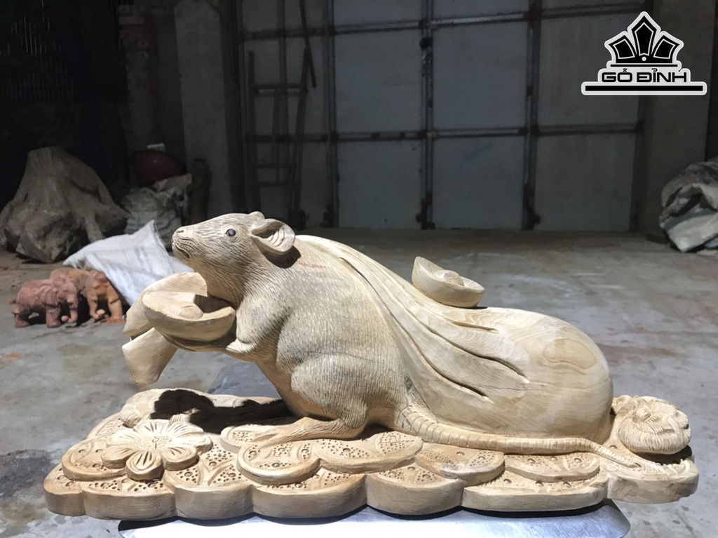 Tượng Chuột Phong Thủy Gỗ Ngọc Am Cao 20 Ngang 45 Sâu 19 (cm)