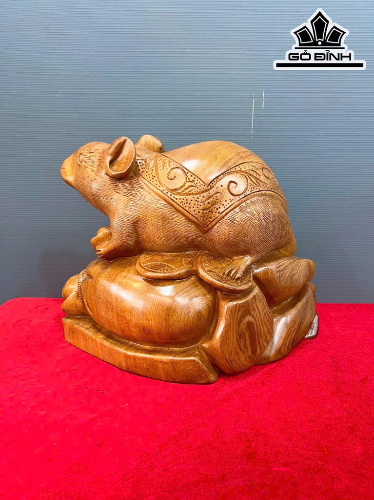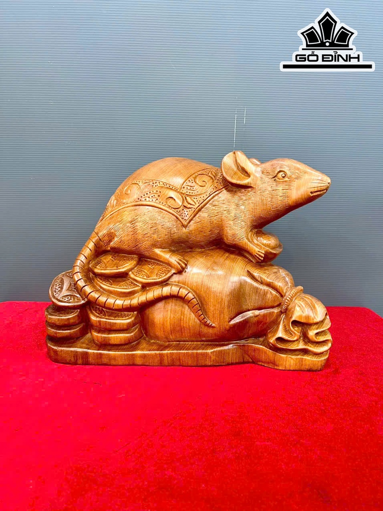 Tượng Chuột Phong Thủy Gỗ Ngọc Am Cao 26 Ngang 36 Sâu 16 (cm)