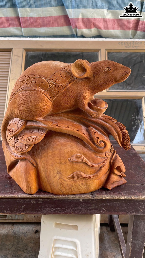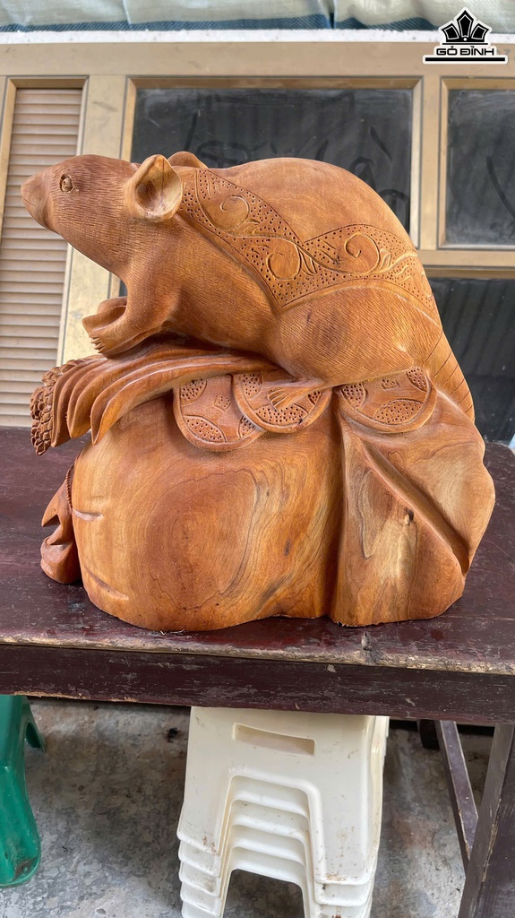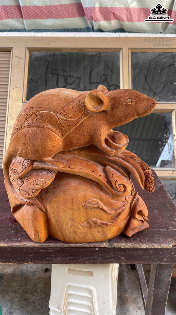 Tượng Chuột Phong Thủy Gỗ Ngọc Am Cao 33 Ngang 35 Sâu 16 (cm)