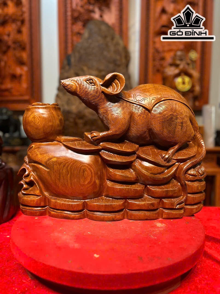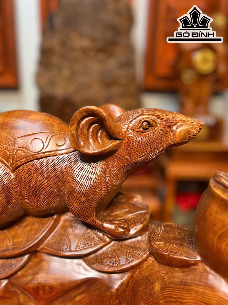 Tượng Chuột Phong Thủy Gỗ Ngọc Am Cao 35 Ngang 48 Sâu 14 (cm)