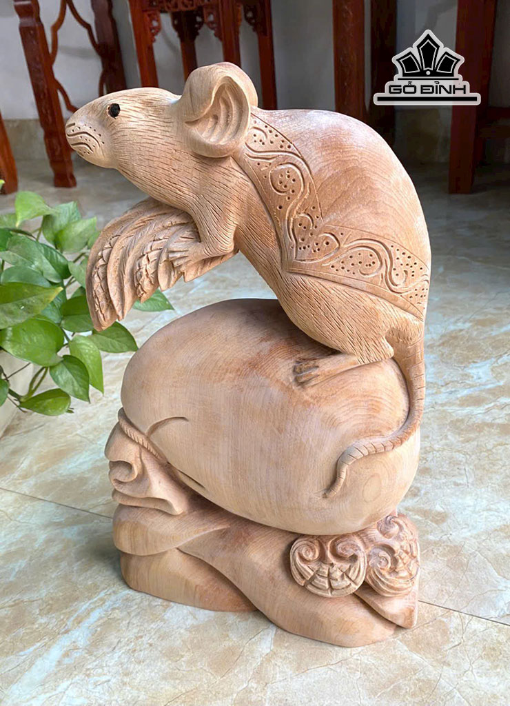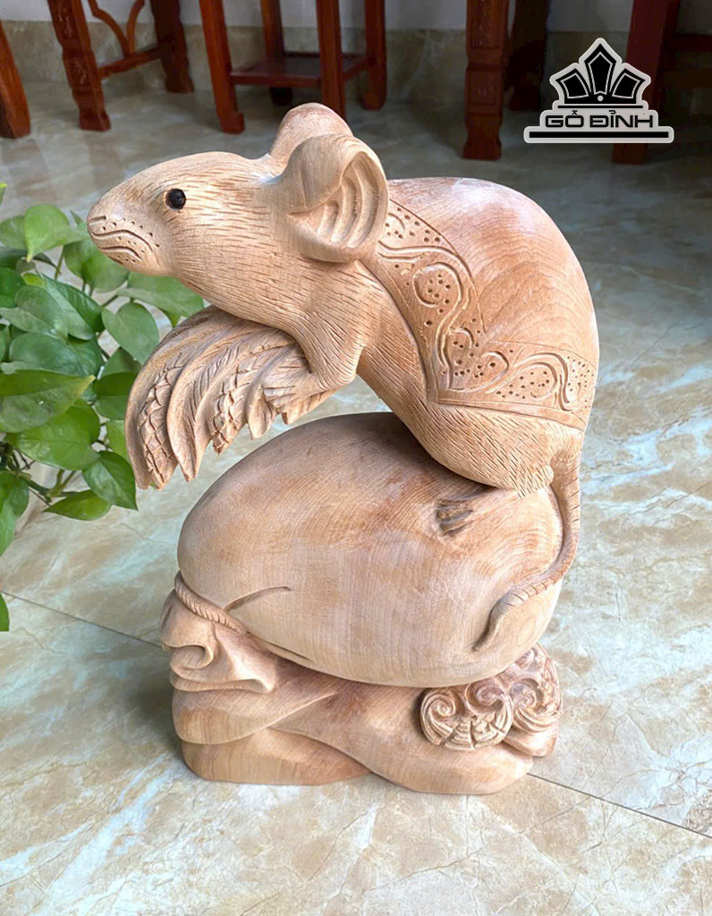 Tượng Chuột Phong Thủy Gỗ Ngọc Am Cao 40 Ngang 24 Sâu 12 (cm)
