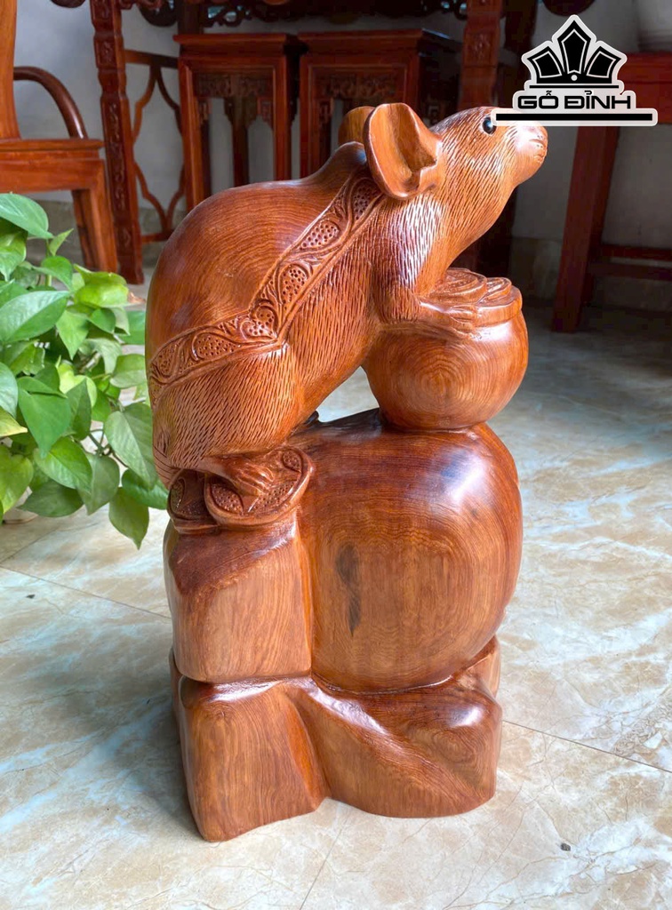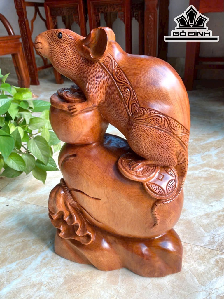 Tượng Chuột Phong Thủy Gỗ Ngọc Am Cao 42 Ngang 26 Sâu 16 (cm)