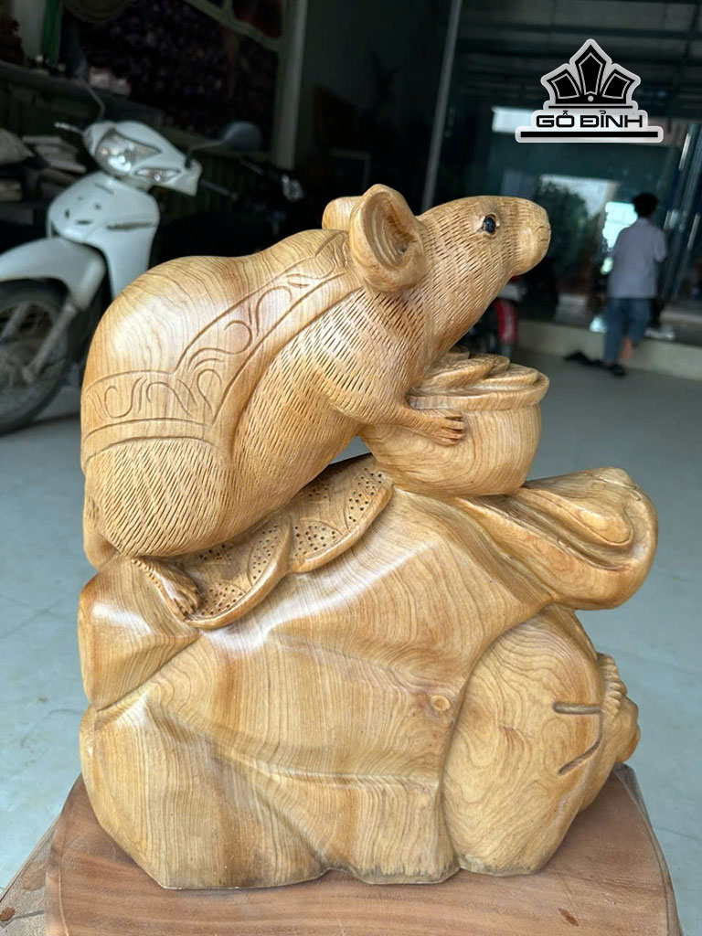 Tượng Chuột Phong Thủy Gỗ Ngọc Am Cao 43 Ngang 38 Sâu 16 (cm)