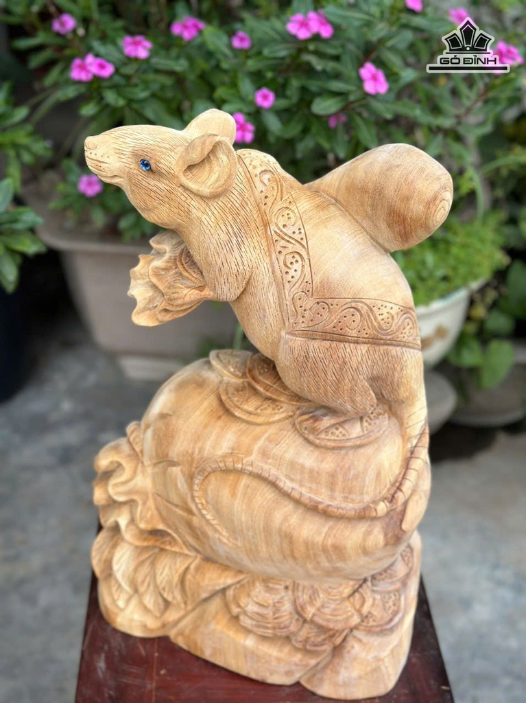 Tượng Chuột Phong Thủy Gỗ Ngọc Am Cao 50 Ngang 32 Sâu 20 (cm)
