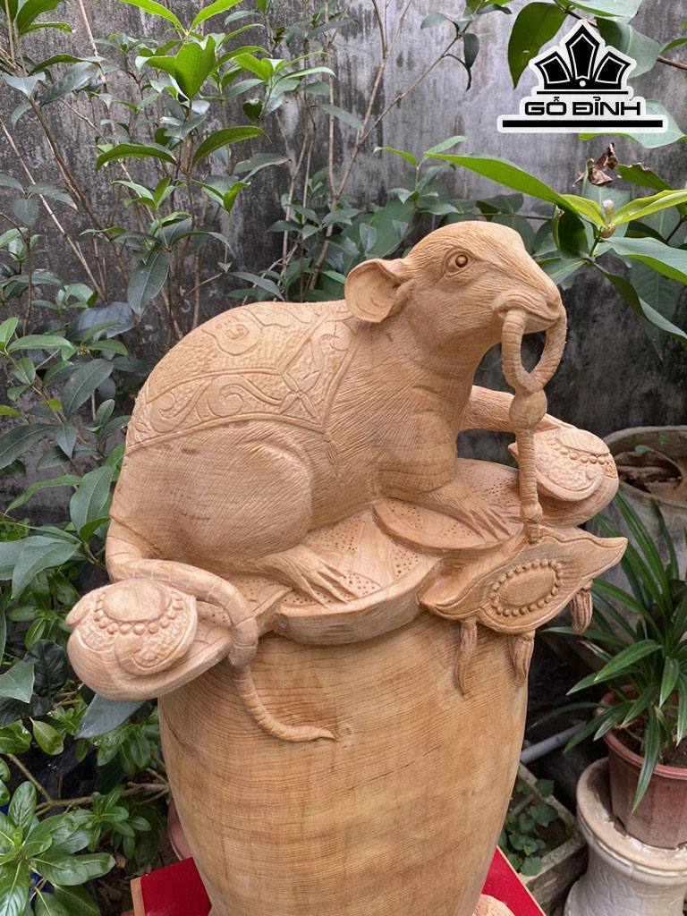 Tượng Chuột Phong Thủy Gỗ Ngọc Am Cao 54 Ngang 30 Sâu 24 (cm)
