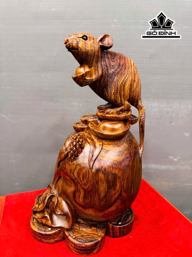 Tượng Chuột Phong Thủy Gỗ Sưa Cao 33 Ngang 20 Sâu 18 (cm)