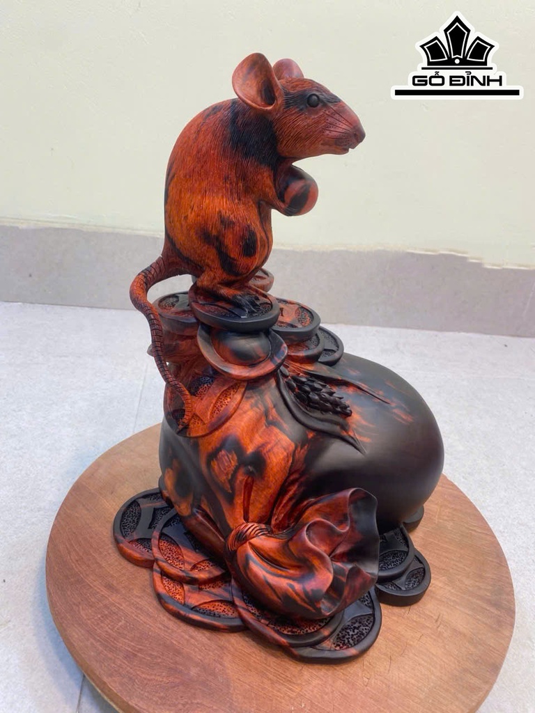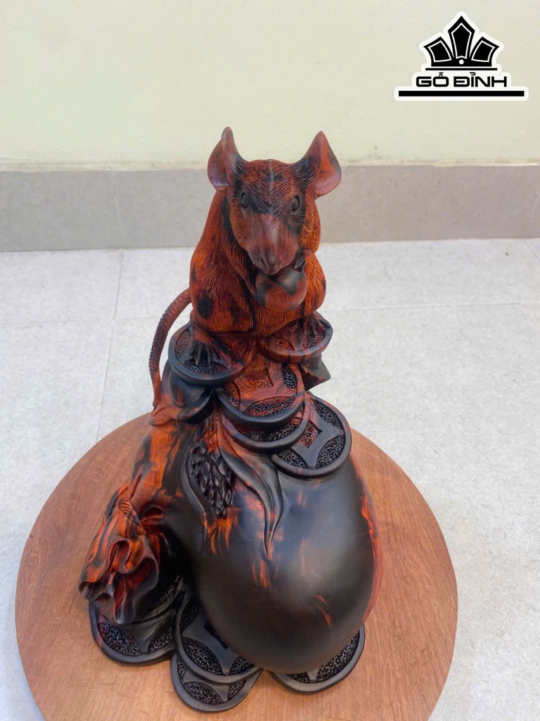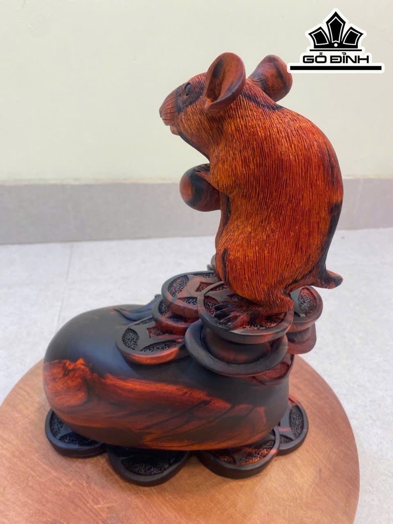 Tượng Chuột Phong Thủy Gỗ Trắc Cao 31 Ngang 23 Sâu 19 (cm)