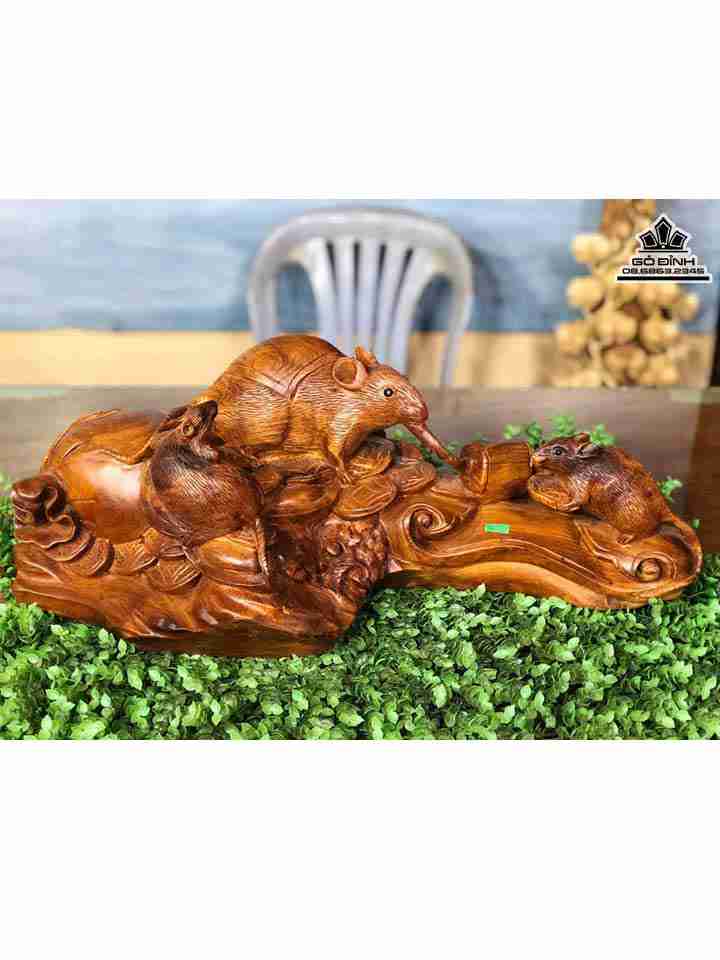 Tượng Chuột Phú Quý Gỗ Hương Cao 20 Rộng 60 Dày 30 (cm)