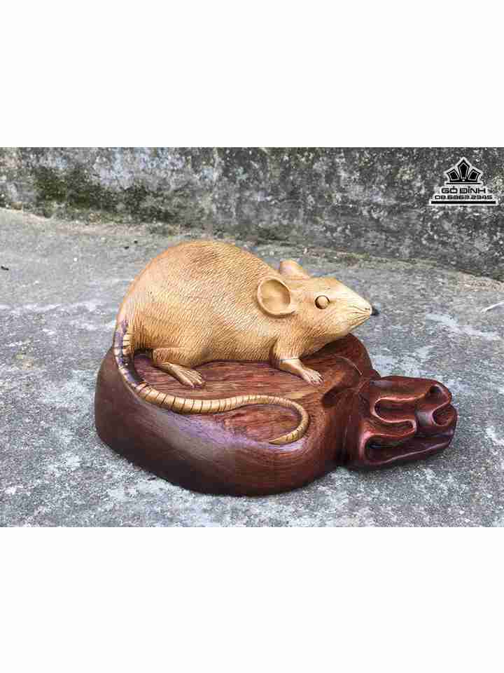 Tượng Chuột Phú Quý Gỗ Hương Cao 8 Rộng 16 Sâu 11 (cm)