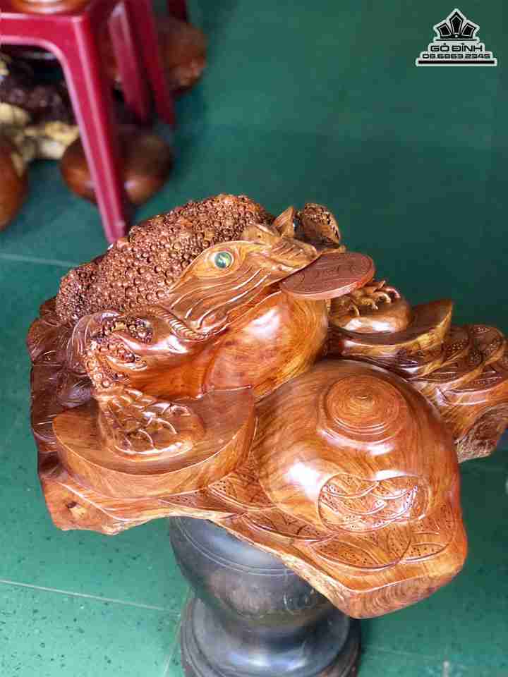 Tượng cóc 3 chân ( Thiềm Thừ) ngồi chum tiền gỗ hương cao 30 rộng 60 dày 56 (cm)
