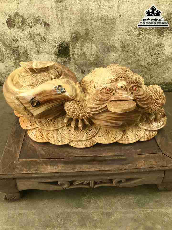 Tượng Cóc Chấn Lộc Gỗ Nu Nghiến Cao 20 Ngang 50 Sâu 31 (cm)