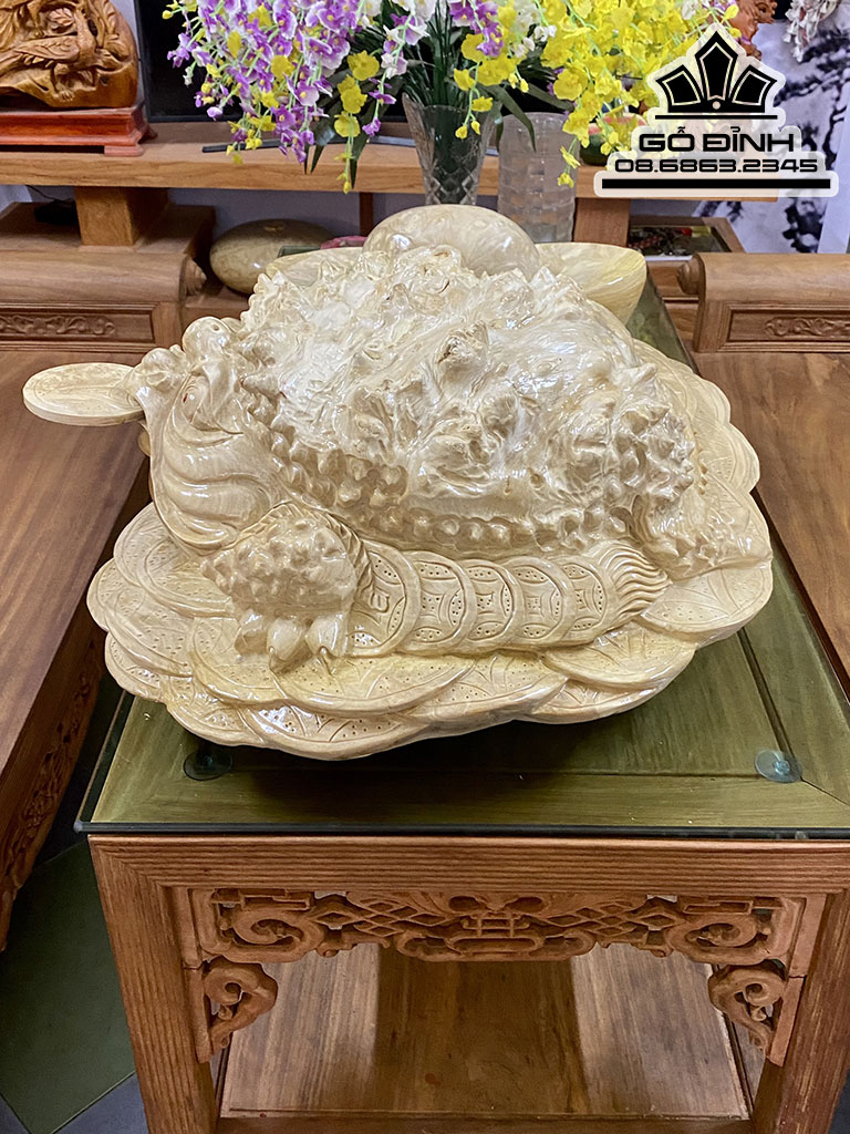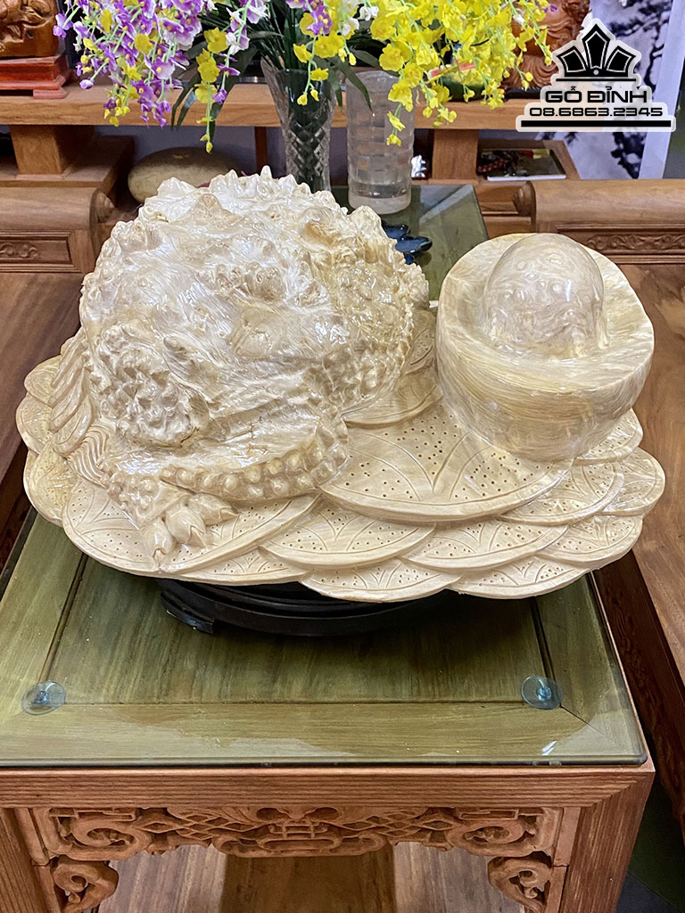 Tượng Cóc Chấn Tiền Gỗ Nu Nghiến Cao 25 Ngang 63 Sâu 55 (cm)
