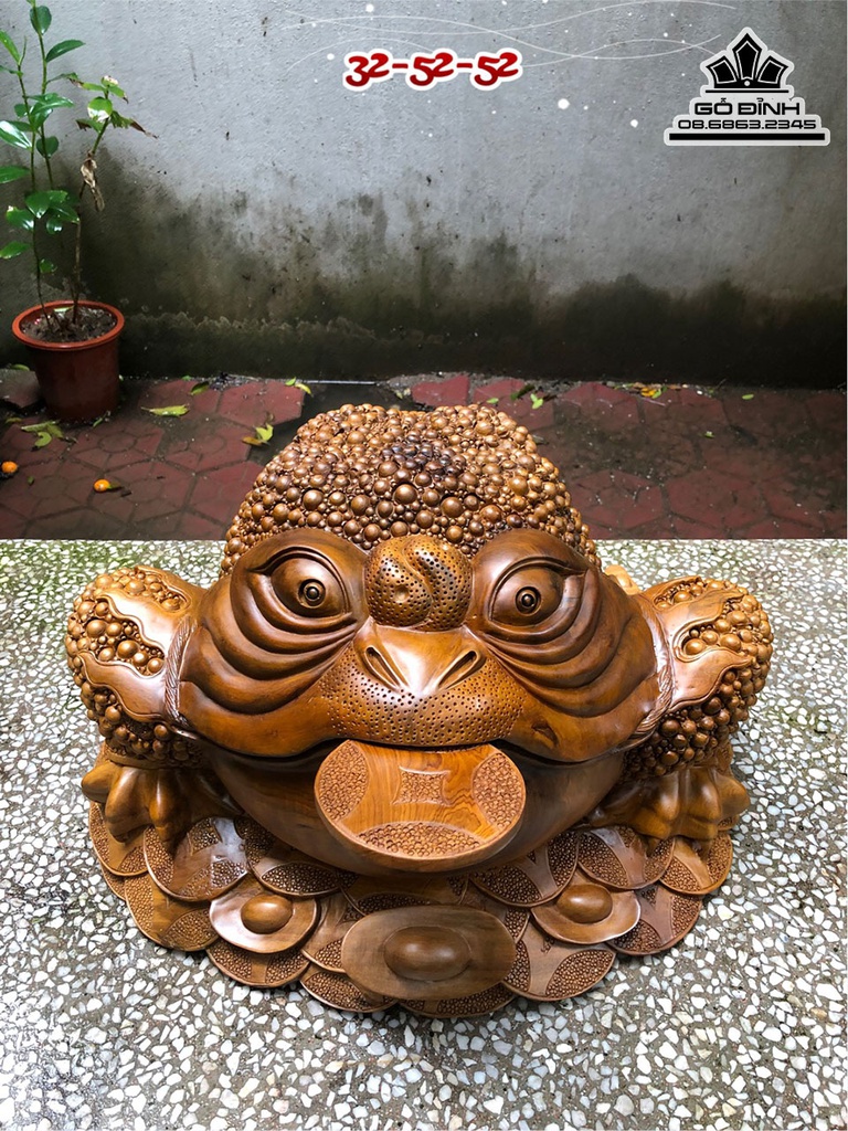 Tượng Cóc Gỗ Bách Xanh Cao 32 Ngang 52 Sâu 52 (cm)
