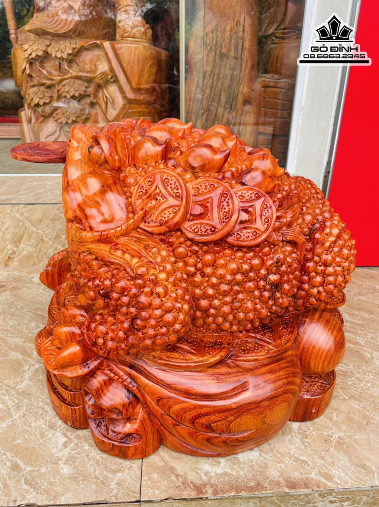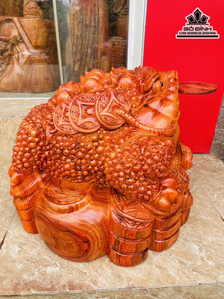 Tượng Cóc Gỗ Hương Cao 40 Ngang 50 Sâu 46 (cm)