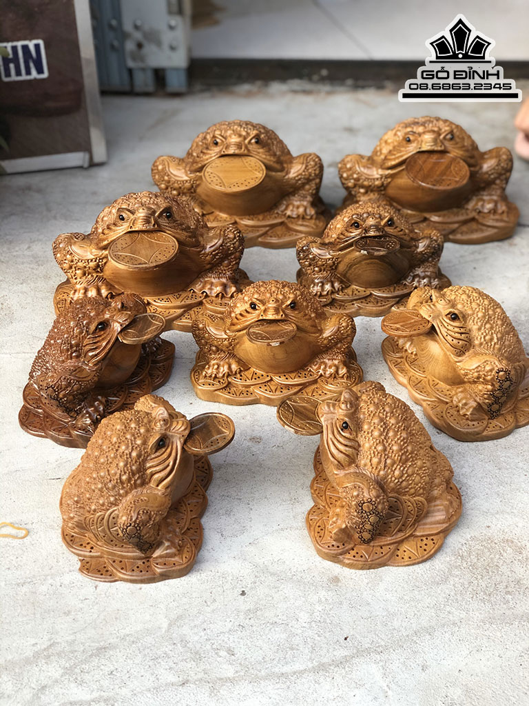 Tượng Cóc Ngậm Tiền Gỗ Bách Xanh Cao 15 Ngang 11 Sâu 9 (cm)