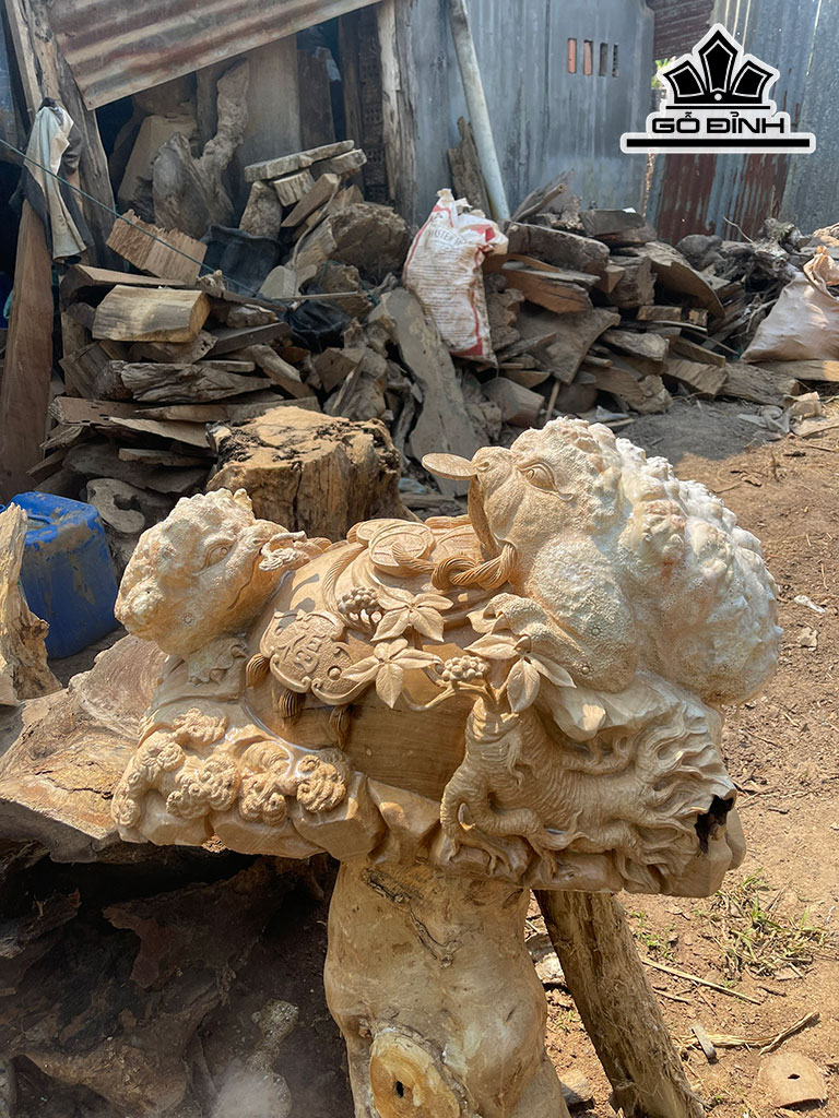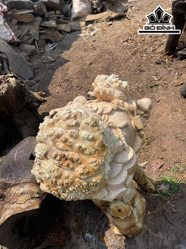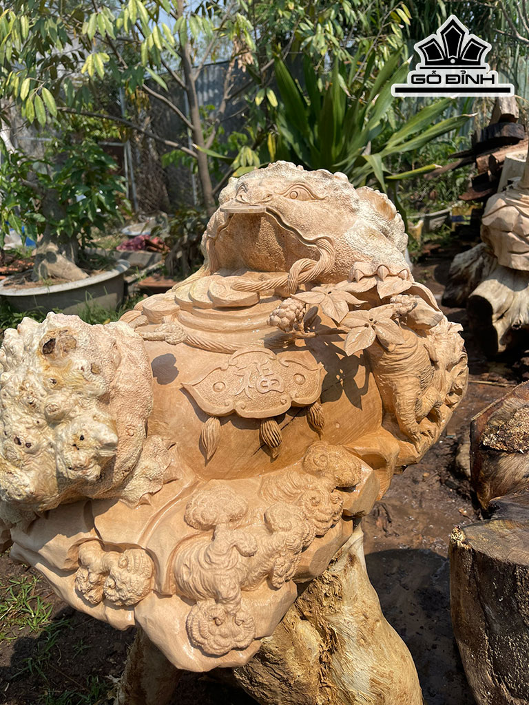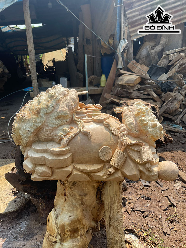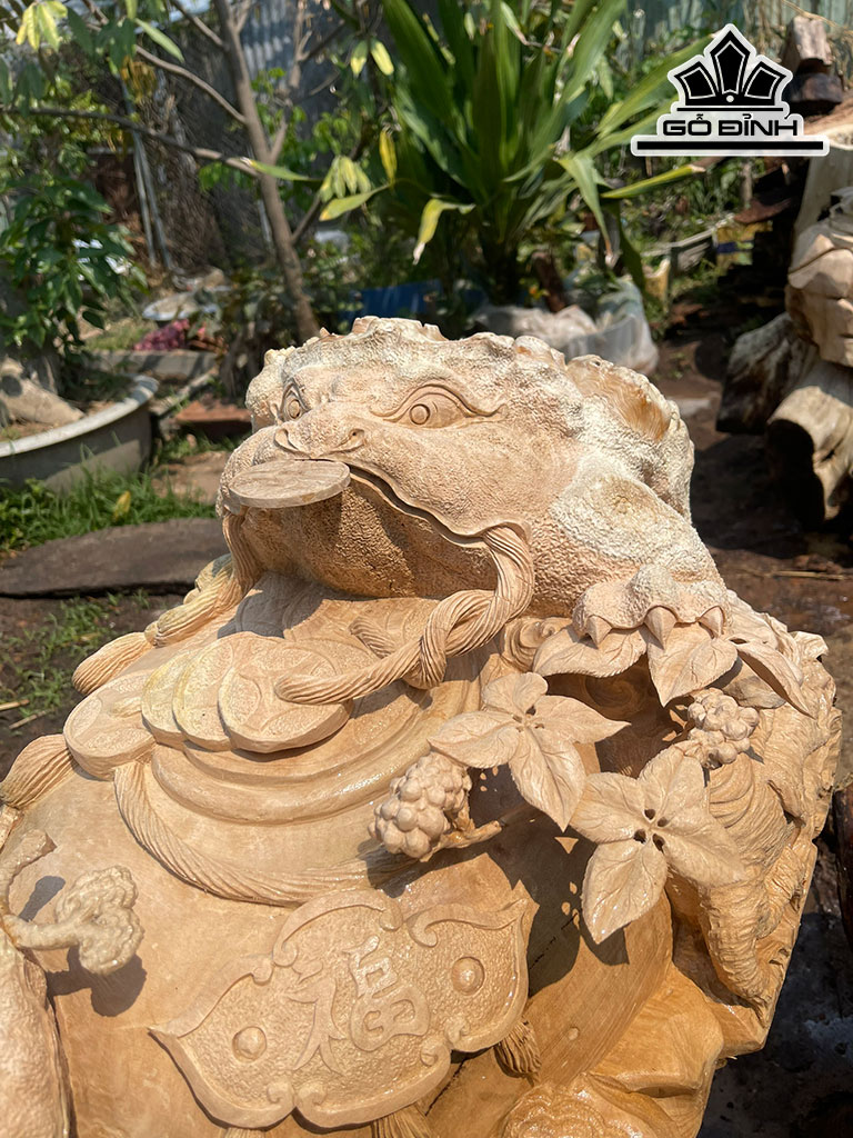 Tượng Cóc Ngậm Tiền Gỗ Bò Ma