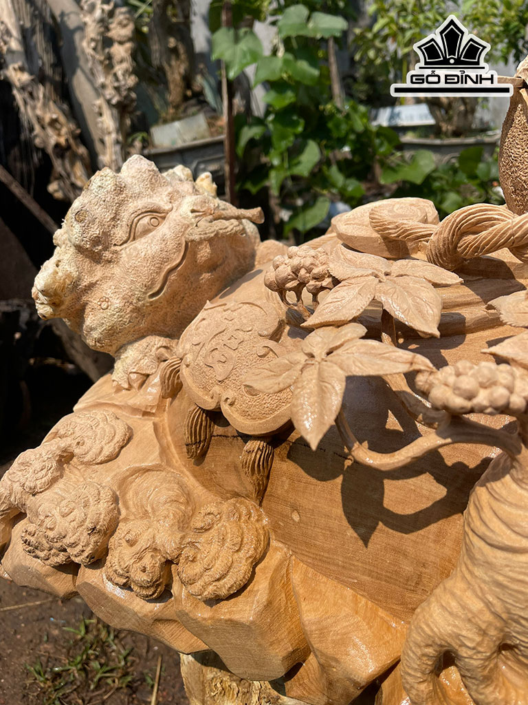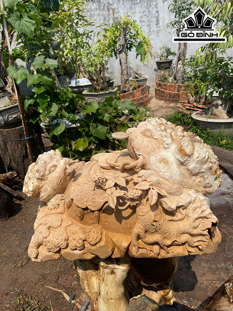 Tượng Cóc Ngậm Tiền Gỗ Bò Ma Cao 35 Ngang 65 Sâu 45 (cm)