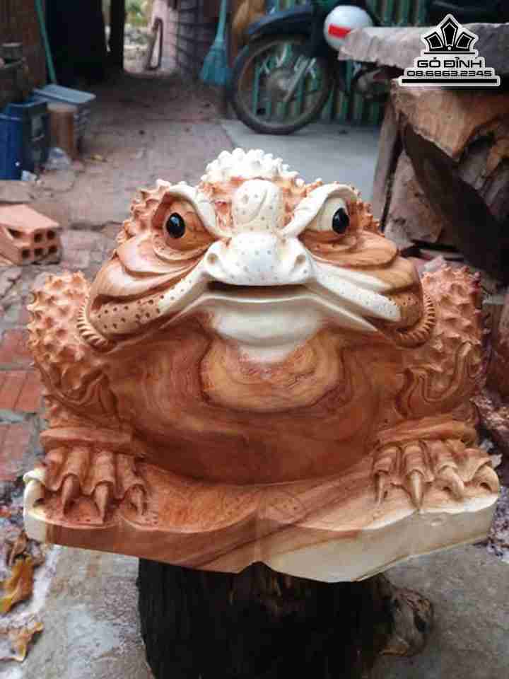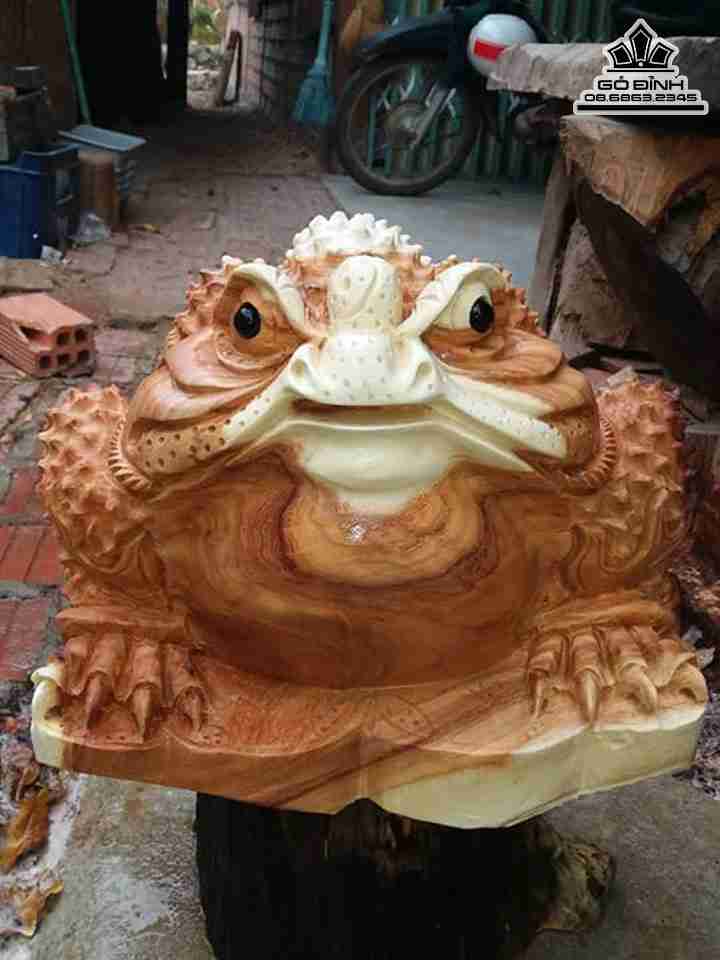 Tượng Cóc Ngậm Tiền Gỗ Gõ Đỏ ( Cate ) Cao 29 Rộng 35 Sâu 33 (cm)