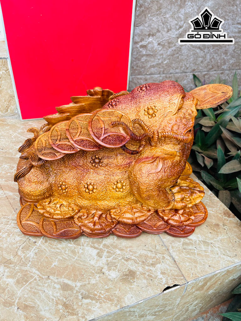 Tượng Cóc Ngậm Tiền Gỗ Hương Cao 22 Ngang 35 Sâu 26 (cm)