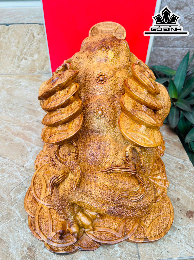 Tượng Cóc Ngậm Tiền Gỗ Hương Cao 23 Ngang 36 Sâu 25 (cm)