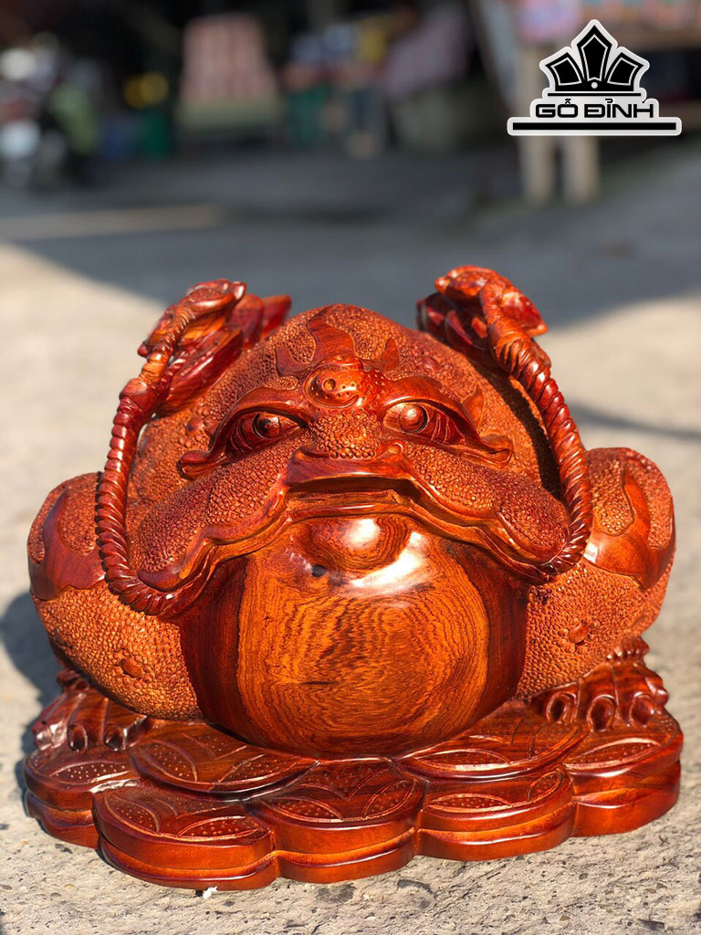 Tượng Cóc Ngậm Tiền Gỗ Hương Cao 28 Ngang 34 Sâu 36 (cm)