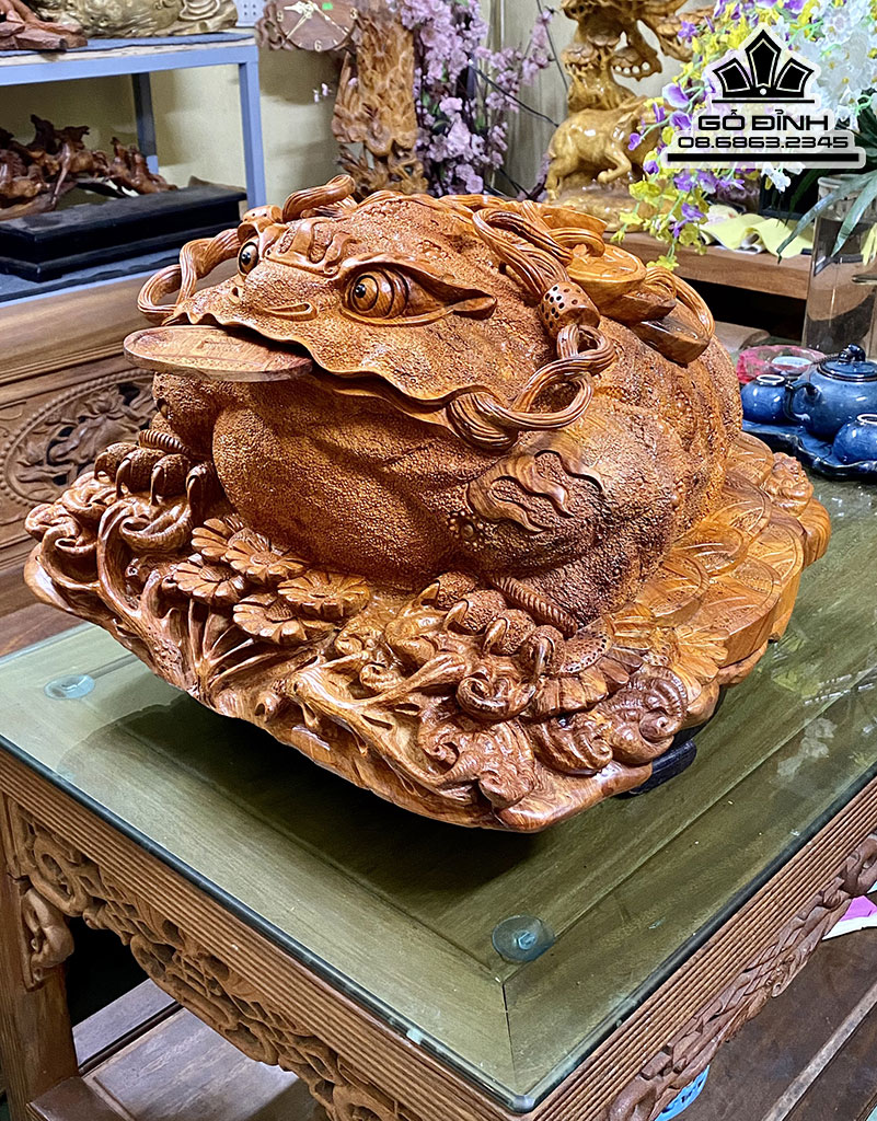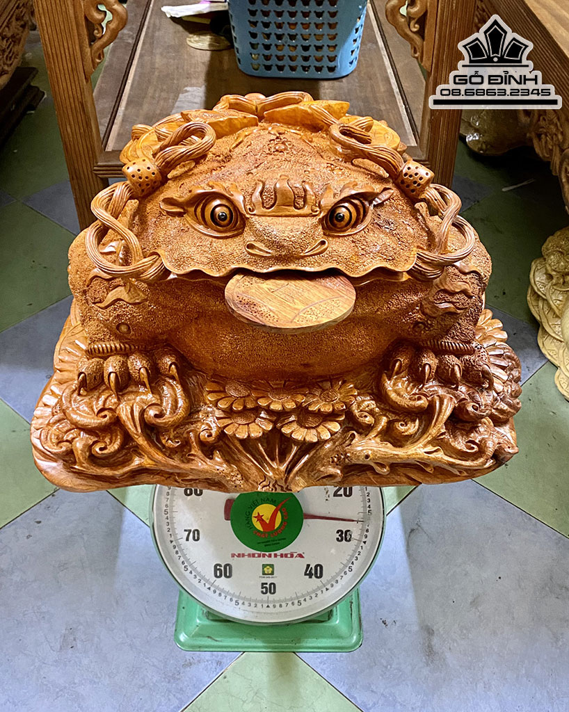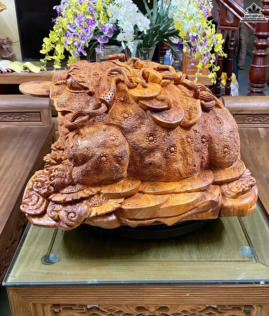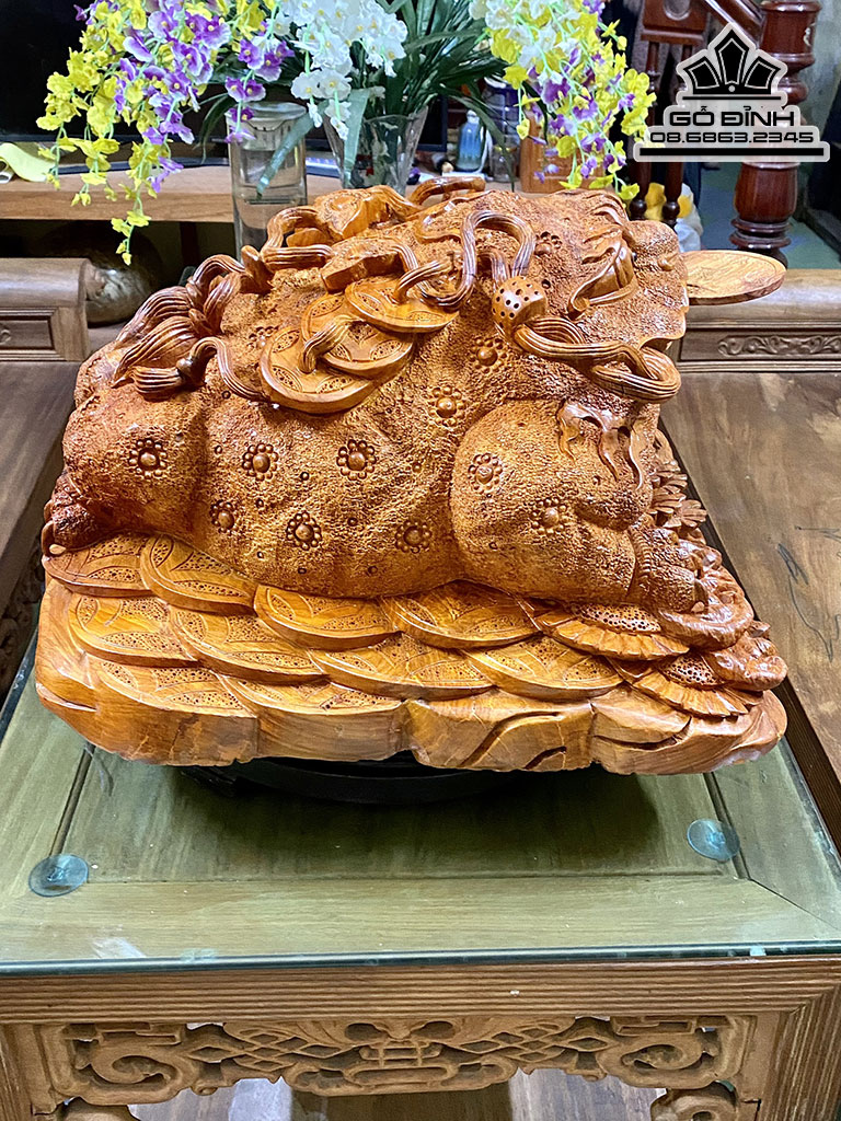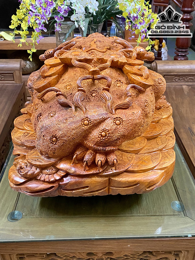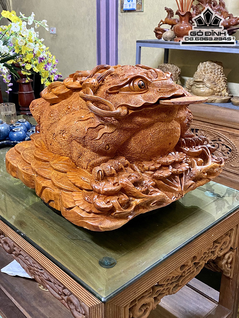 Tượng Cóc Ngậm Tiền Gỗ Hương Cao 30 Rộng 50 Sâu 52 (cm)